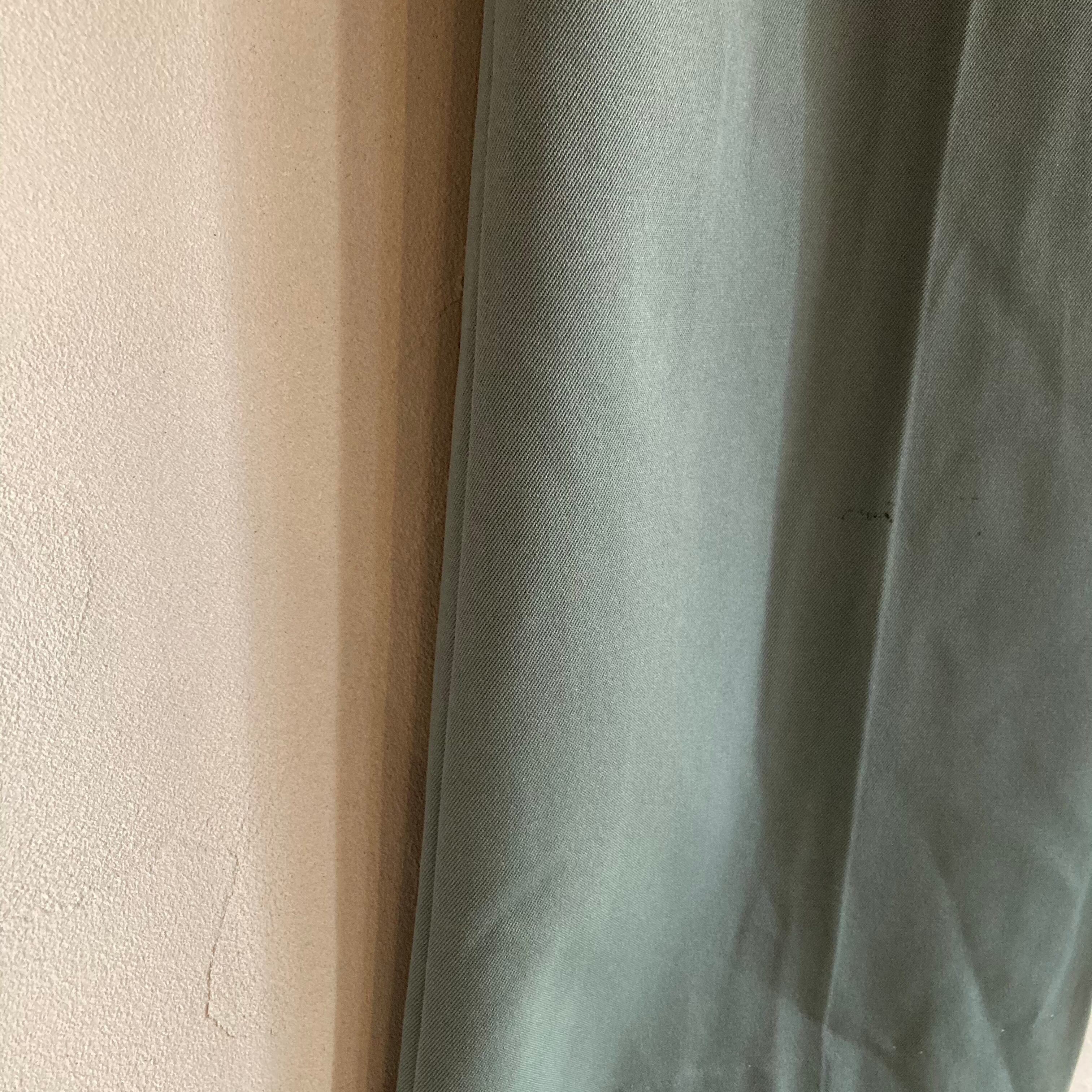 グリーンとパープルのボタンのコントラストがおしゃれな70年代のワイドパンツです。ウエストから裾にかけてのラインがとても素敵です。