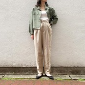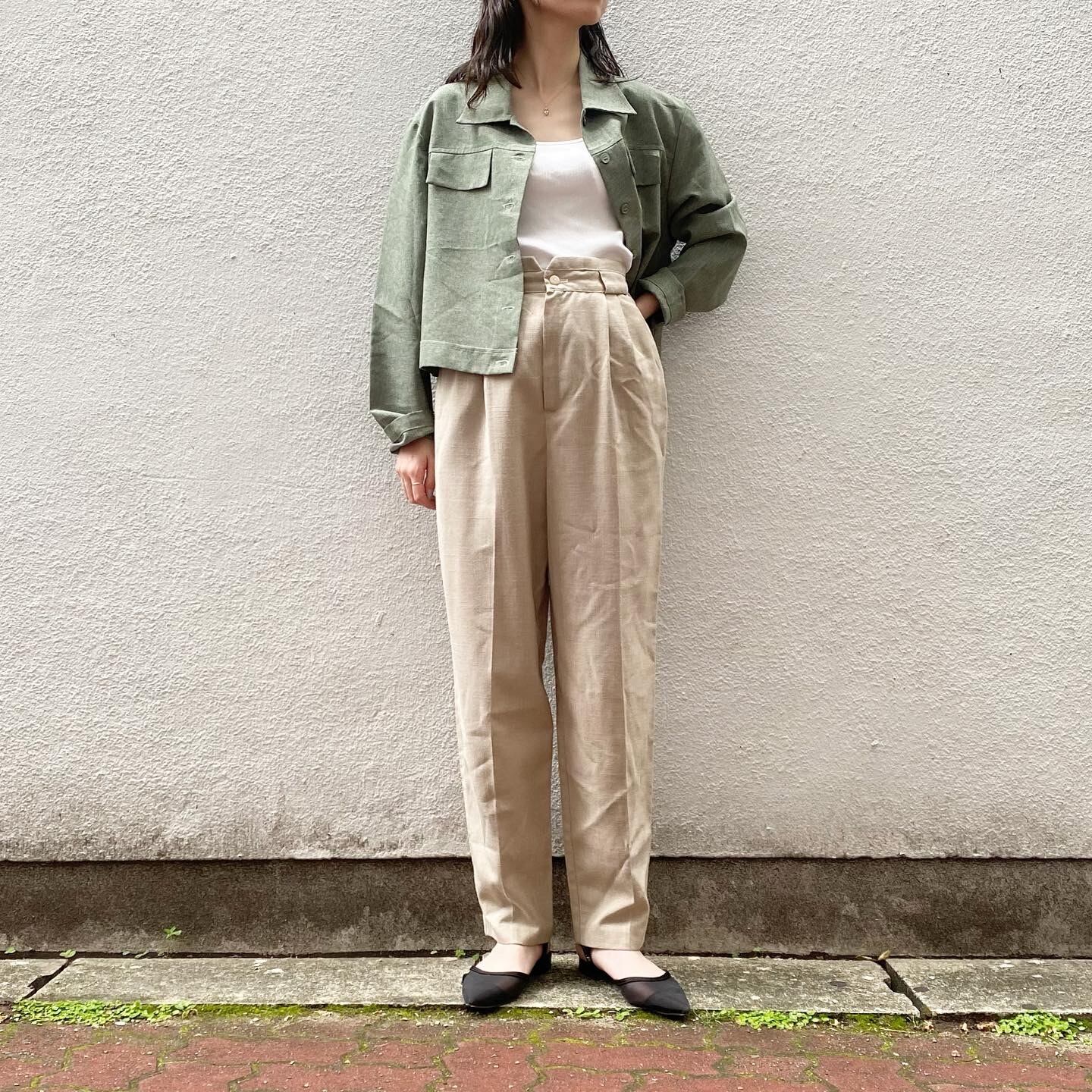 ウエストのカッティングが可愛らしいスラックスパンツです。ウエスト位置が高めで綺麗なシルエットなので、スタイル良く魅せてくれます。