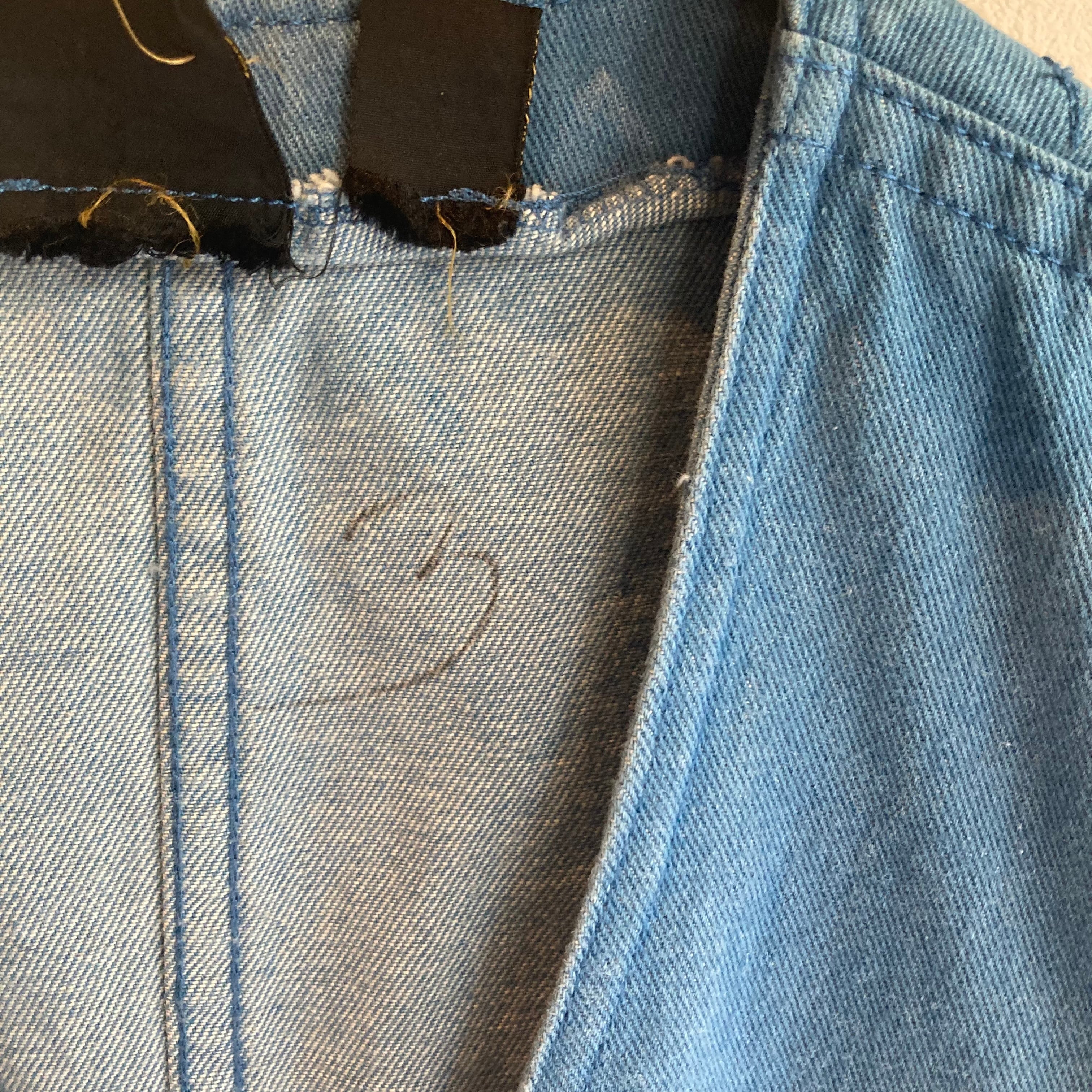 販売前に全体をチェックし、色落ちや穴等気付いた箇所(商品の味としての風合いと判断した箇所を除き)は記載致しますが、稀にわずかなダメージを見落とす場合がございます。