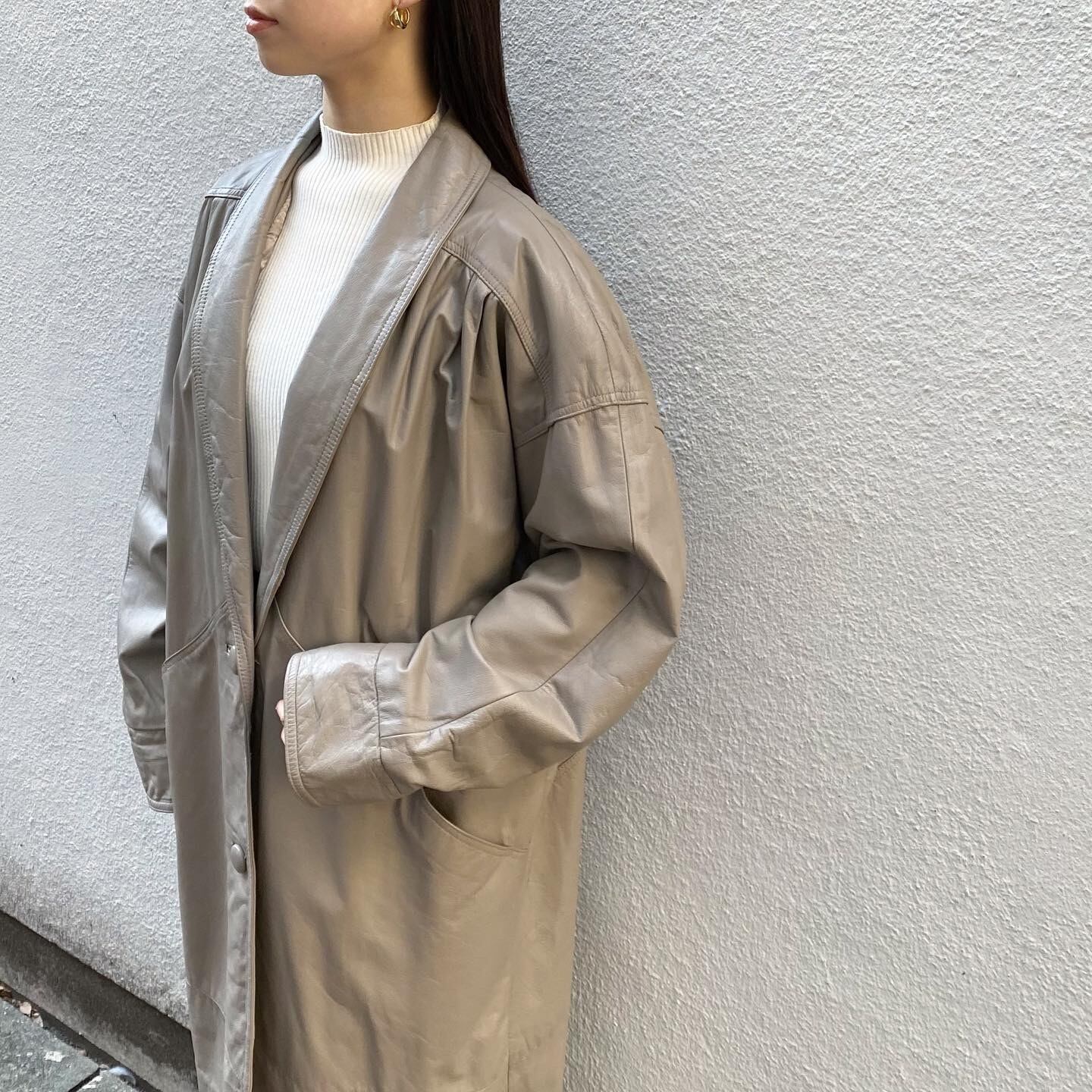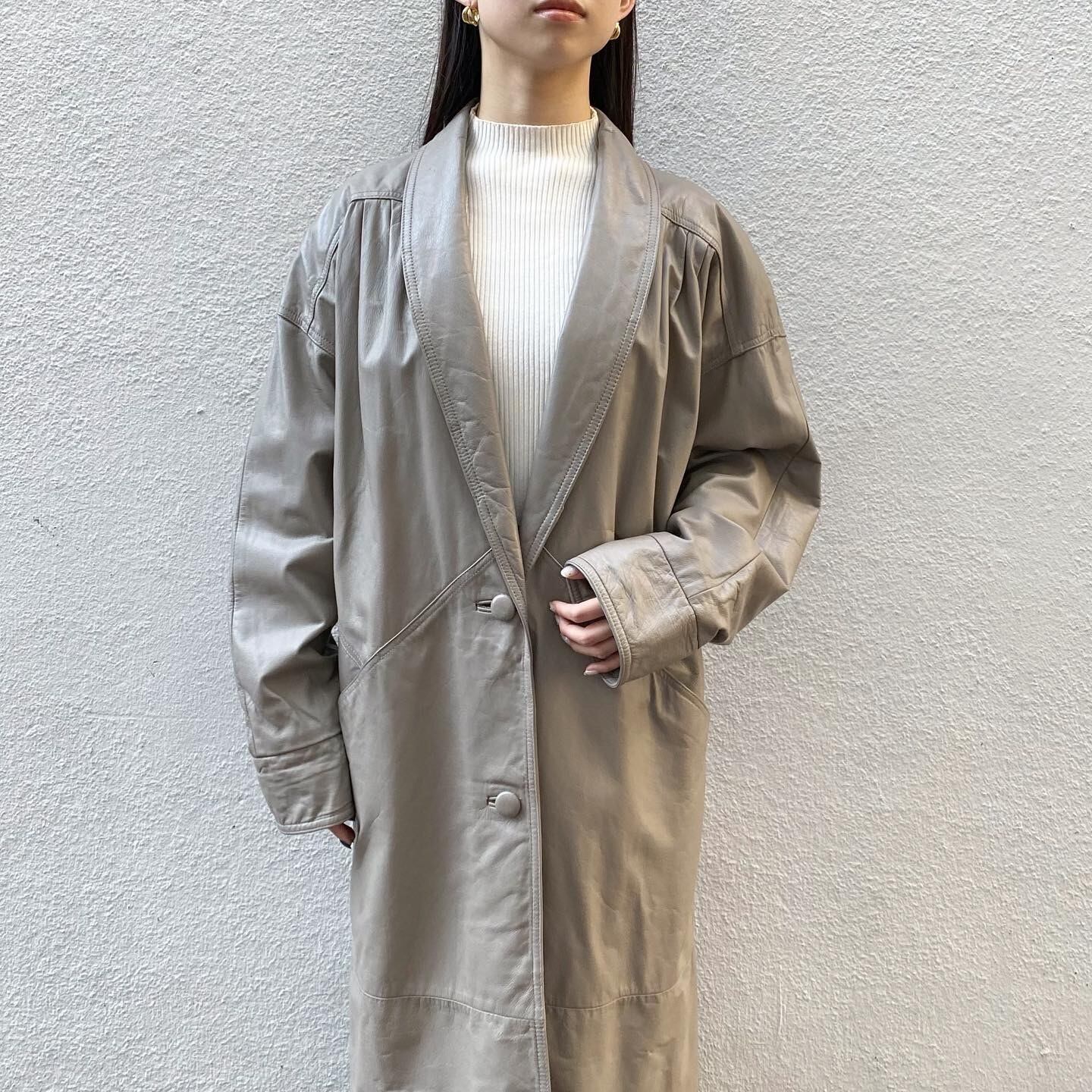 柔らかいレザーの質感が着やすく、シルエットが綺麗なリアルレザーのロングコートです。絶妙なグレージュカラーも珍しく、見た目より重さも気にならずお召し頂けます。
