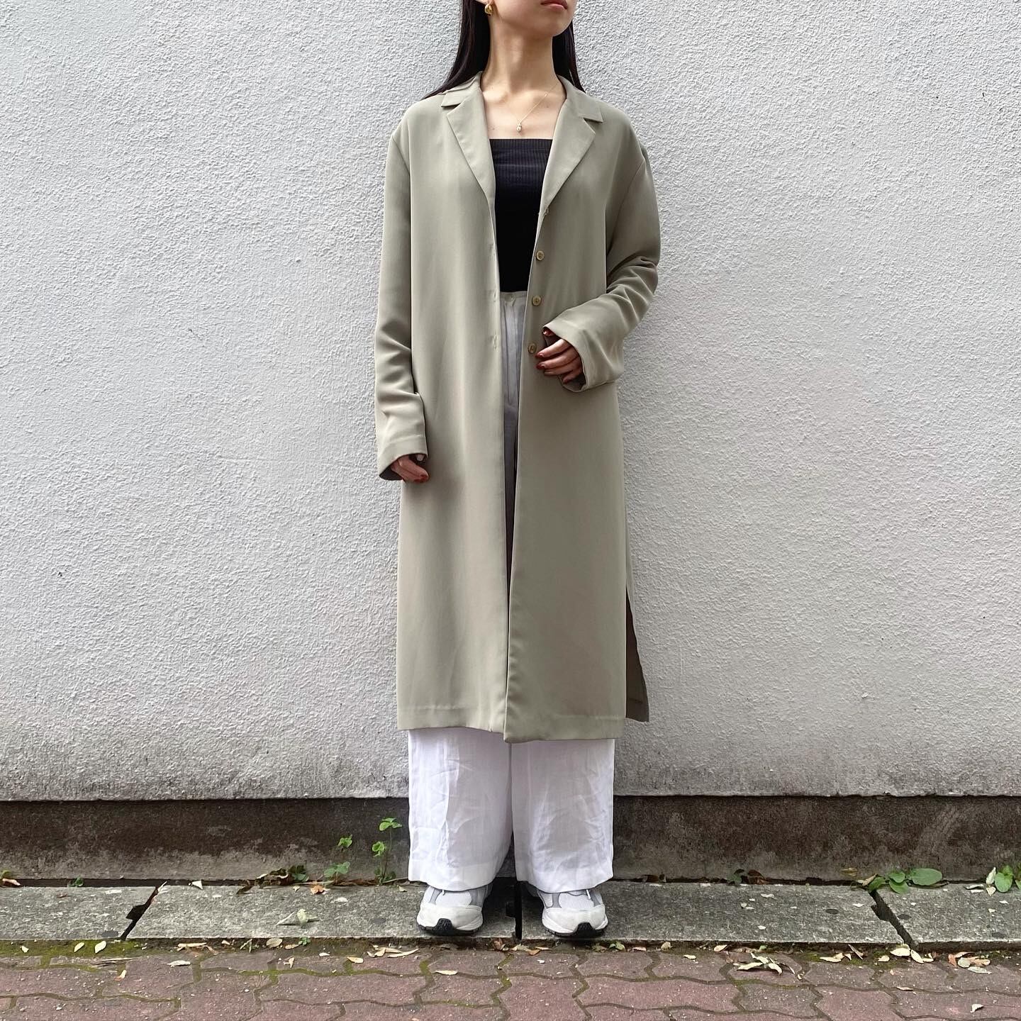 とろみと落ち感のある生地が女性らしいロングジャケットです。カチッとしすぎず柔らかい印象でお召し頂ける1着です。