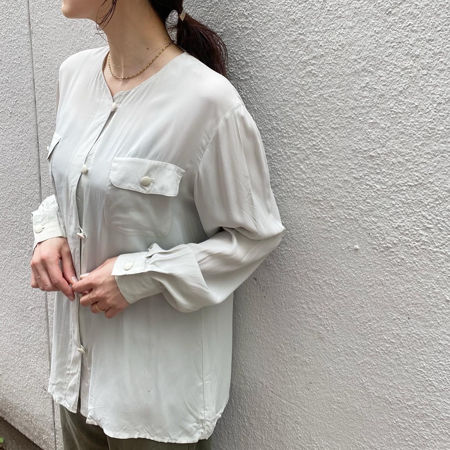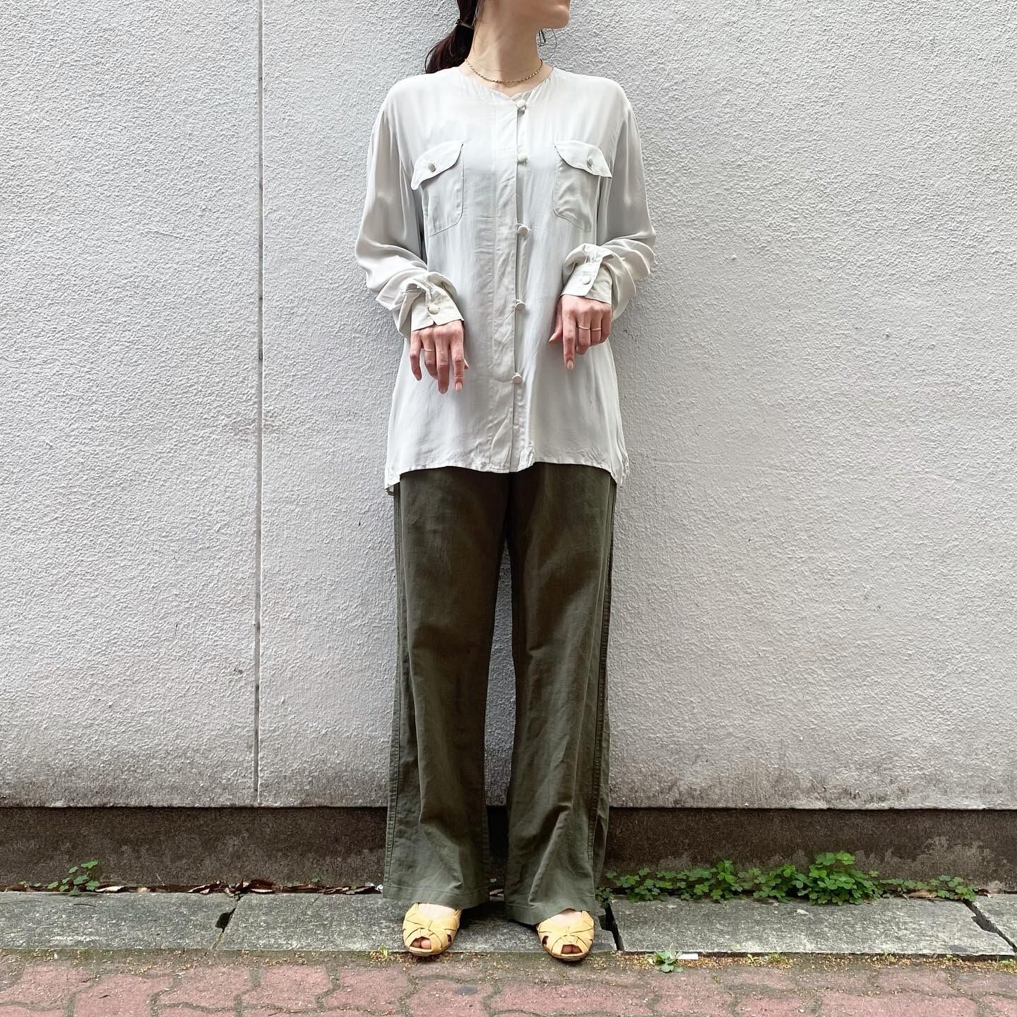 落ち感が綺麗で女性らしいデザインシャツです。カジュアルにも綺麗めにもスタイリングしやすくデイリー使いしやすい1着です。