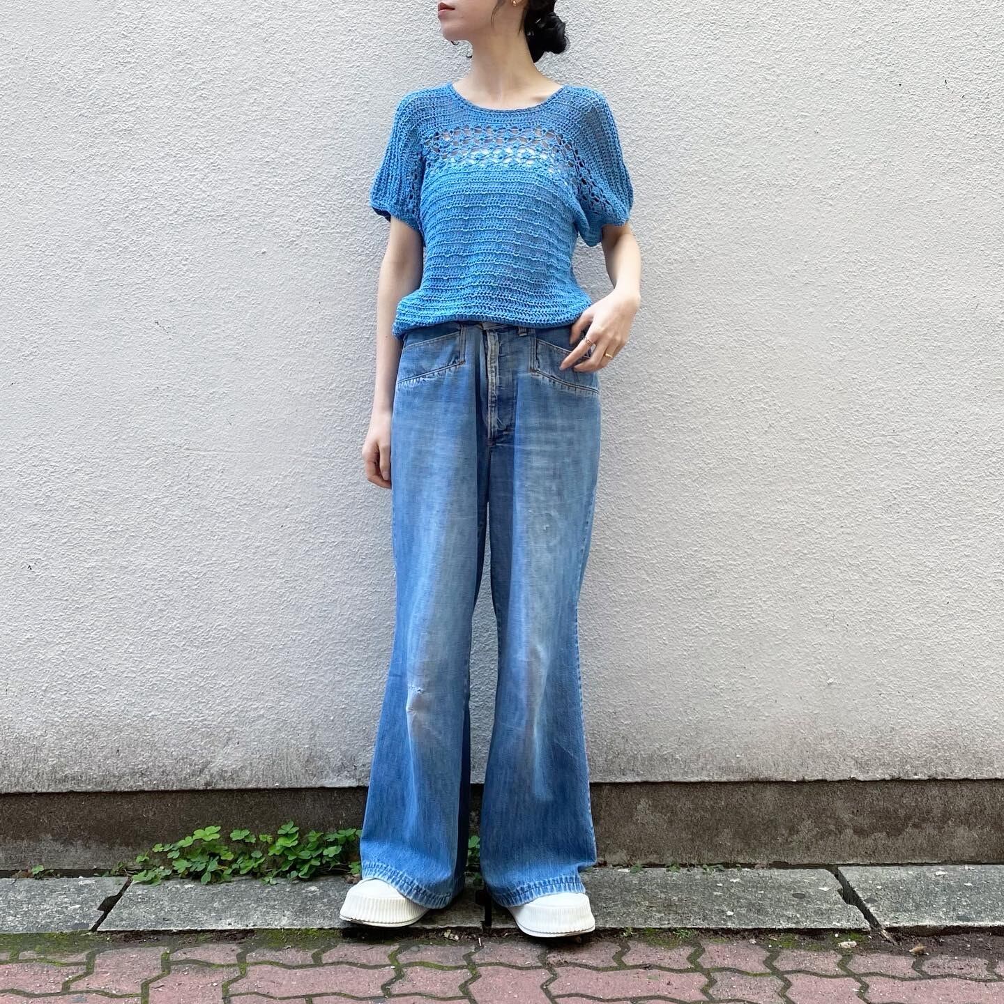 ゆったりとしたラフなシルエットのクロシェトップスです。袖部分がフリル編みになっていてお洒落です。