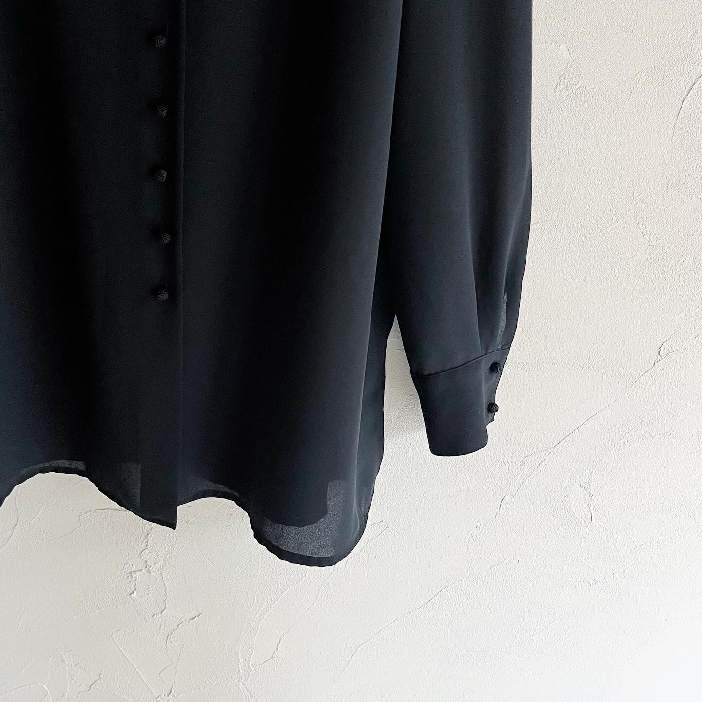 さらっとした生地感で、ゆったりめなサイズのシアーシャツです。フロントのチャイナボタンが一癖あり目を惹きます。