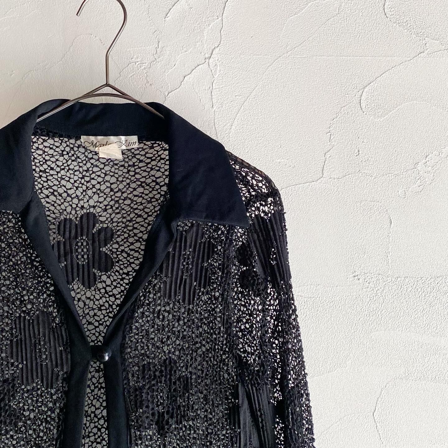 花柄が愛らしく、伸縮性のあるコンパクトなシルエットが素敵なクロシェシャツです。インナー次第で雰囲気を変えてお召し頂けます。