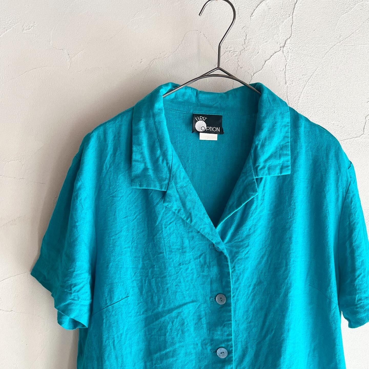 エメラルドグリーンの色味が綺麗なリネンシャツです。薄手で着心地が良く、これからの季節にぴったりの1枚です。