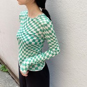 グリーン×ホワイトのぱきっとしたカラーリングが目を惹くシアートップスです。伸縮性がありコンパクトなサイズ感なので、1枚できるのはもちろん、シャツやジャケットとレイヤードするのも素敵です。