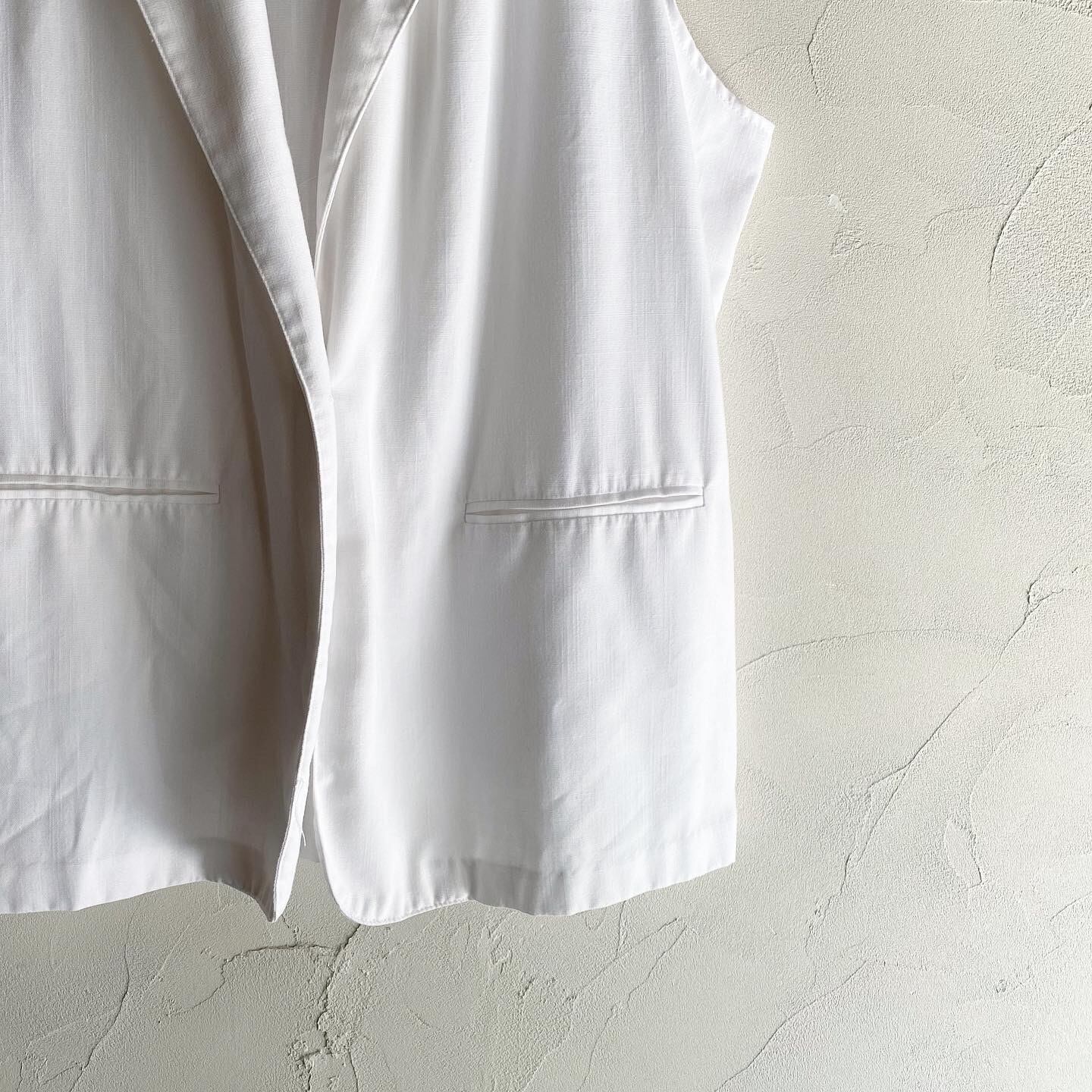 潔いホワイトカラーが爽やかなテーラードベストです。ワンピースやスカート、トレンドのカーゴパンツ等と合わせるのも素敵です。