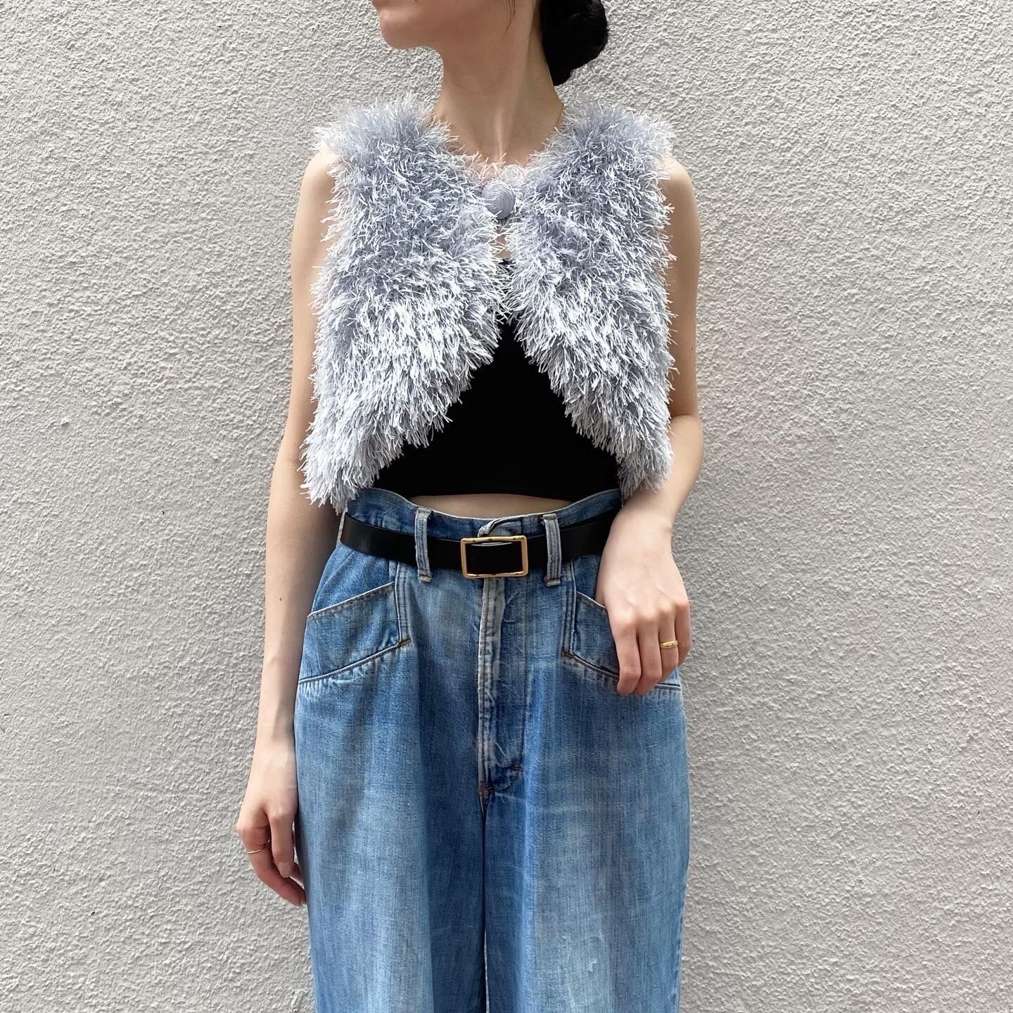 キラキラしたラメ糸が織り込まれたファーベストです。オケージョンシーンではもちろん、カジュアルなアイテムと組み合わせてデイリー使いも素敵です。