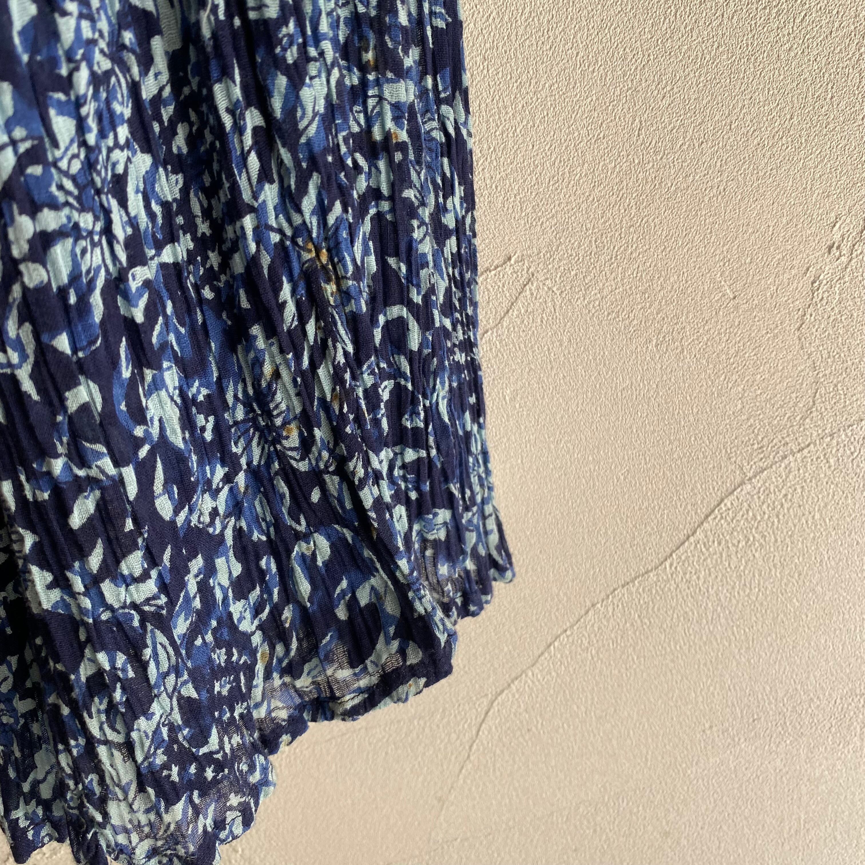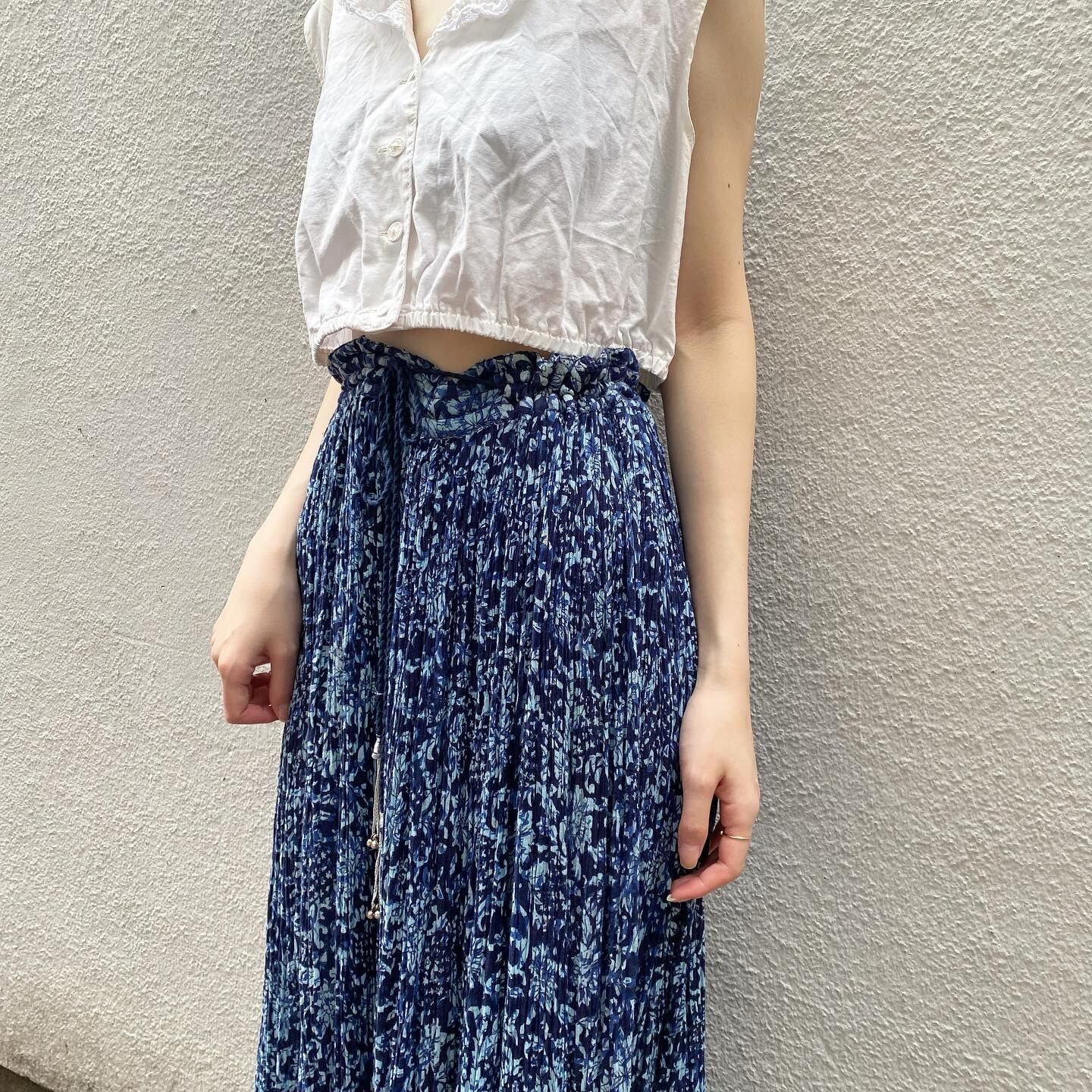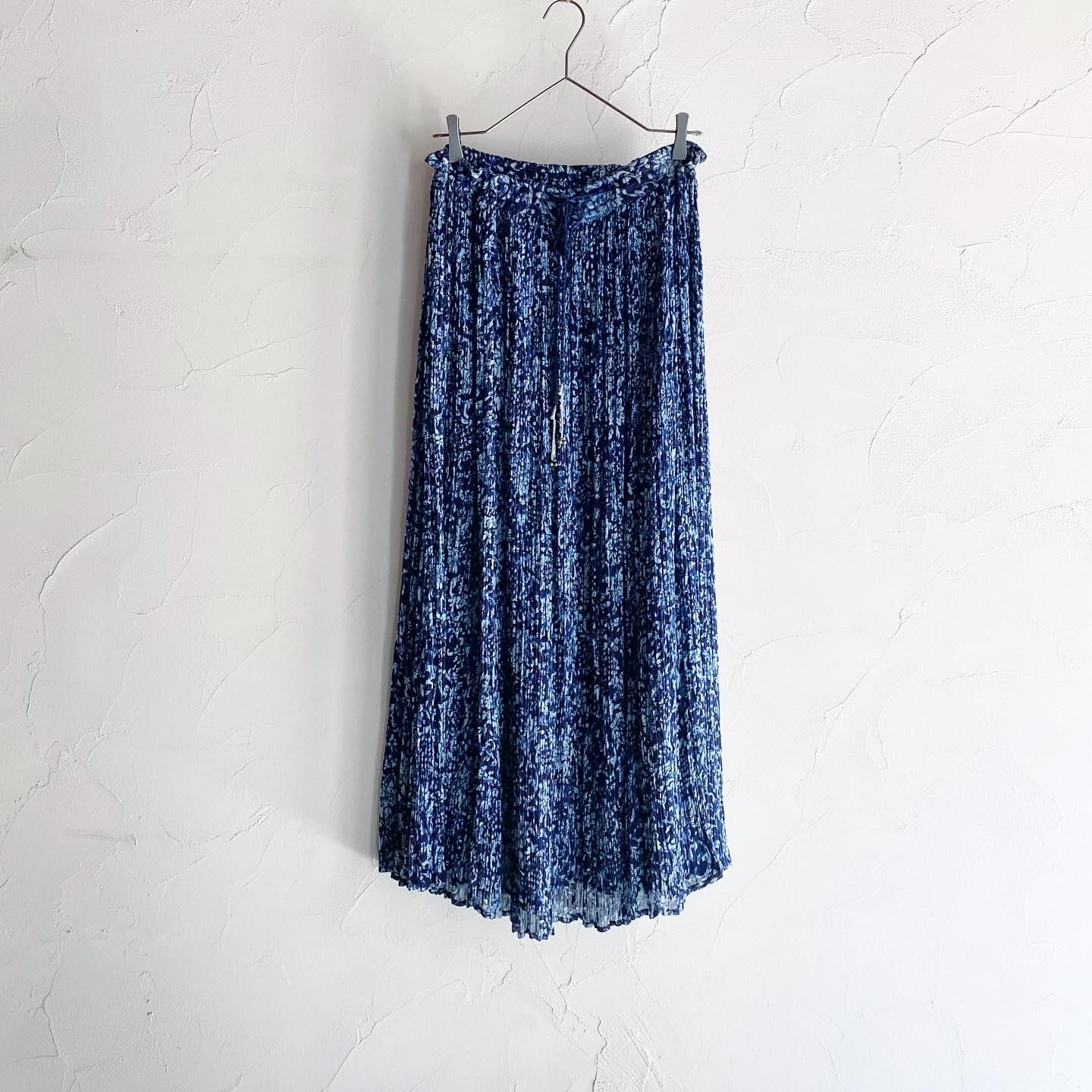 ウエストコードに付いた小さなシルバーの鈴が可愛らしい花柄スカートです。軽くシアーな素材感が、涼しく爽やかな印象でお召し頂けます。
