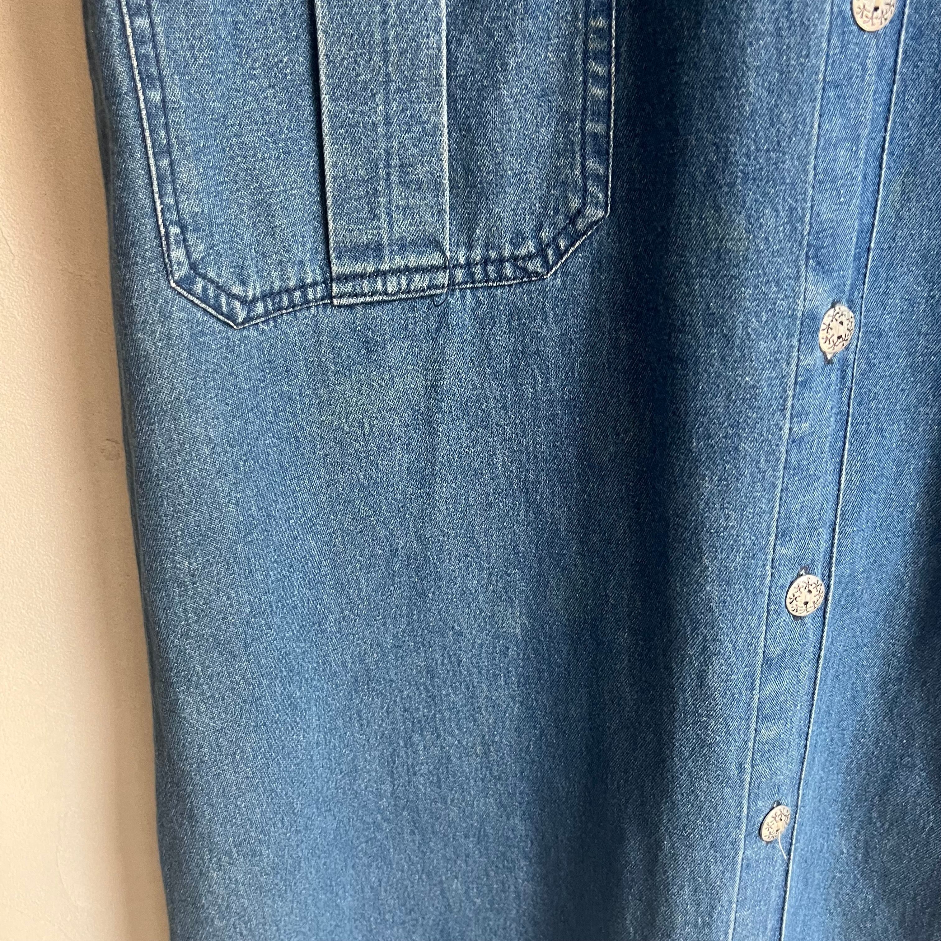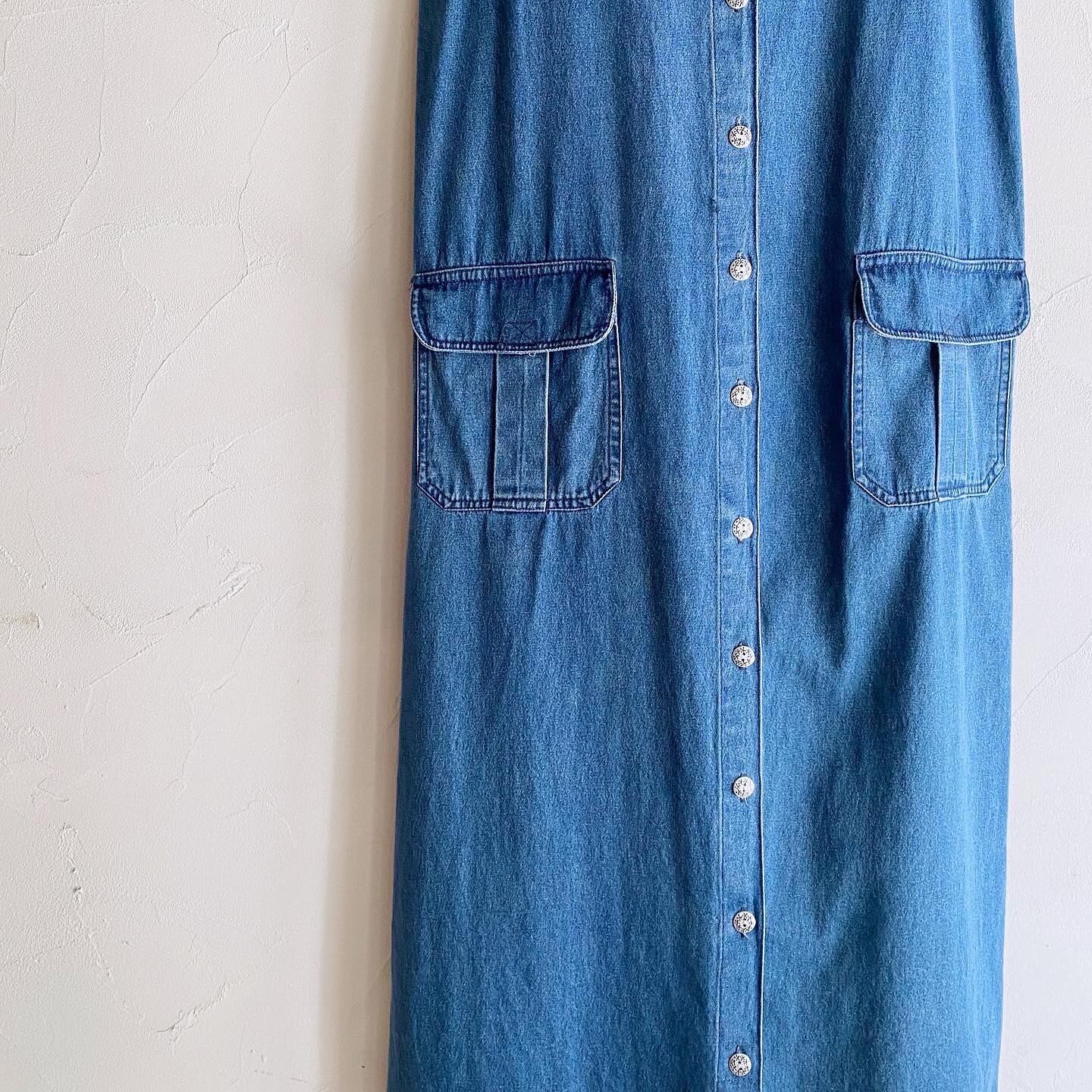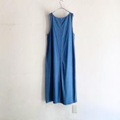 柔らかいデニムのワンピースです。ざっくりと胸元が空いているので、キャミやtシャツとレイヤードしてお召し頂けます。