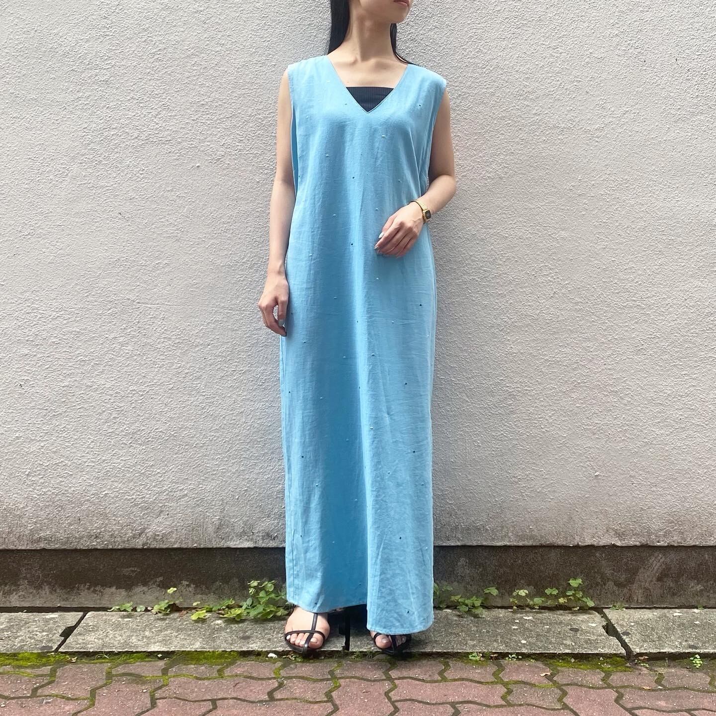 華奢な水玉の刺繍が美しいリネンワンピースです。サイドのリボンでシルエットを変えてお召し頂けます。