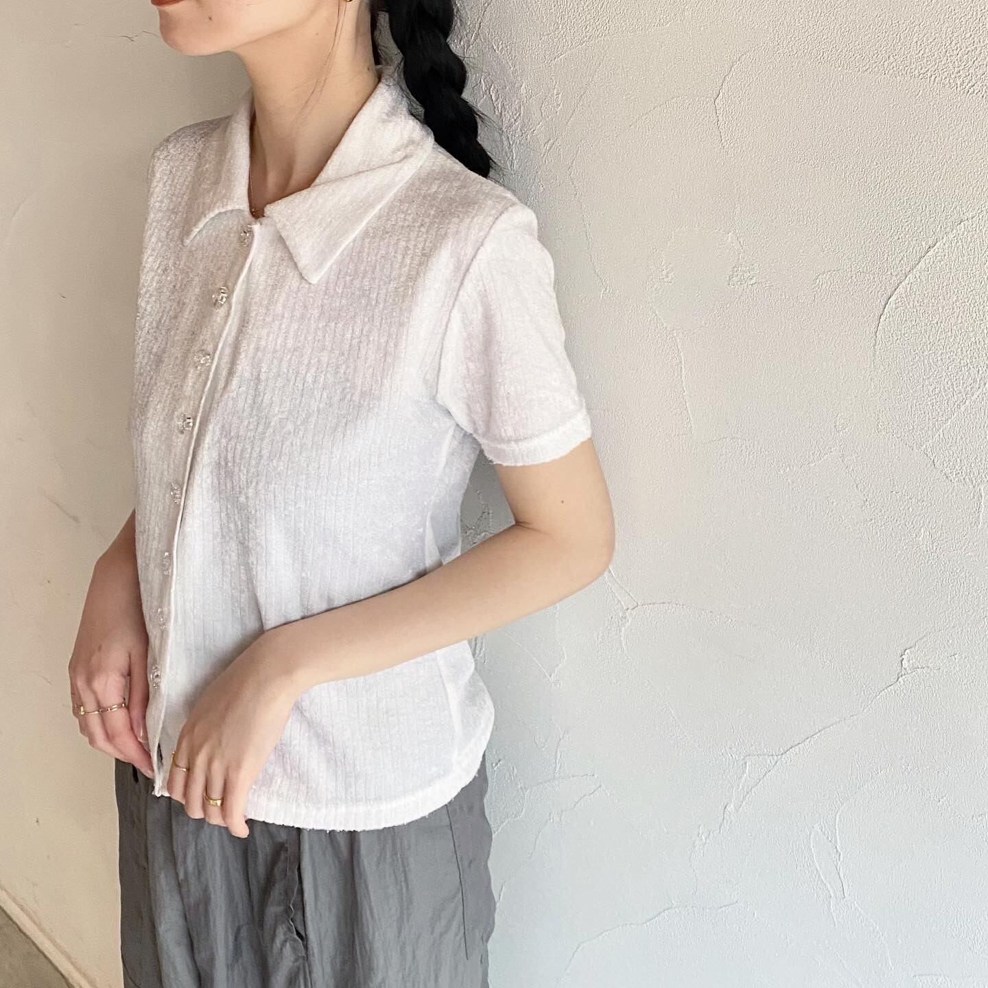 薄いベロア生地のような、程よく光沢のある生地感が美しいシャツです。