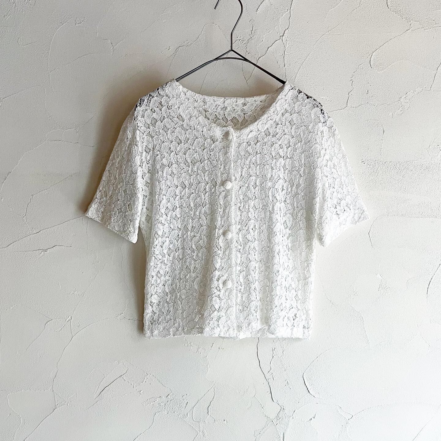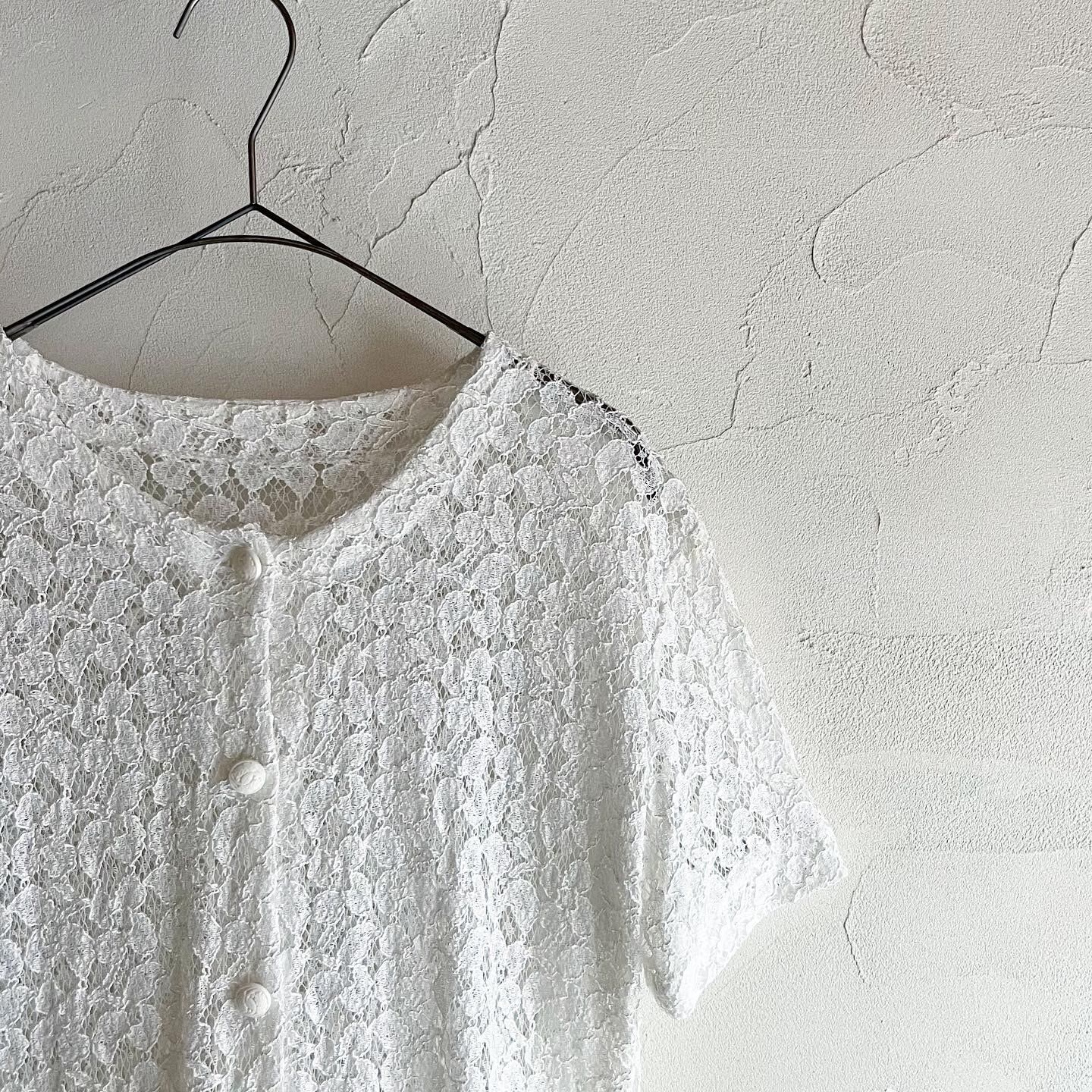 無駄のないシンプルな総レースが美しいノーカラーシャツです。柔らかい生地感で着心地が良く、涼しくお召し頂けます。