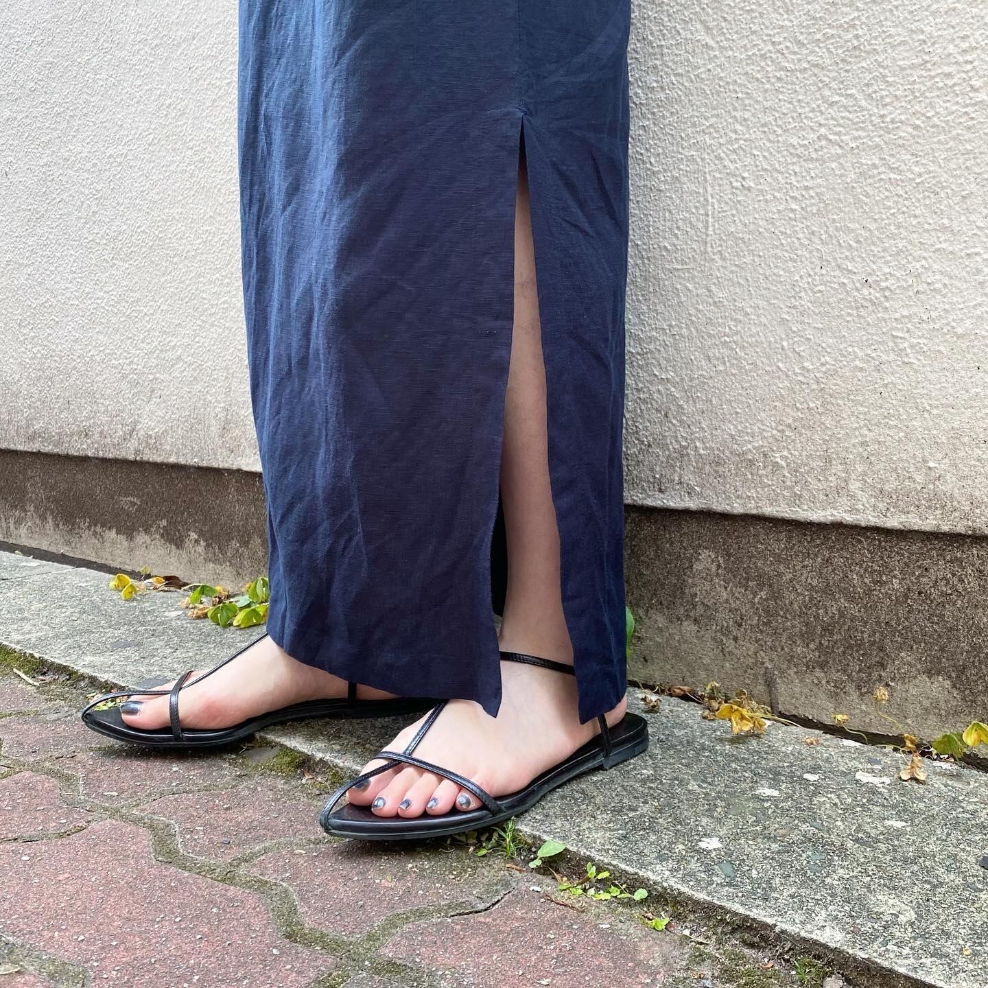 フロントの連なるボタンやポケットなどディティールが目を惹くワンピースです。リネン混の生地で軽く涼しい着心地です。