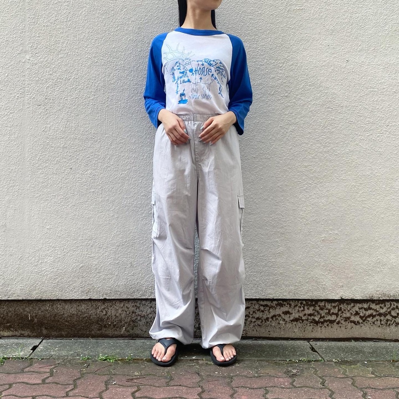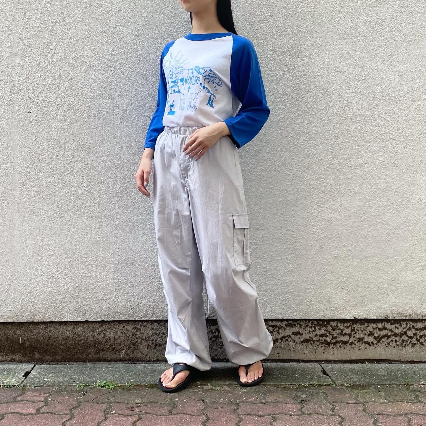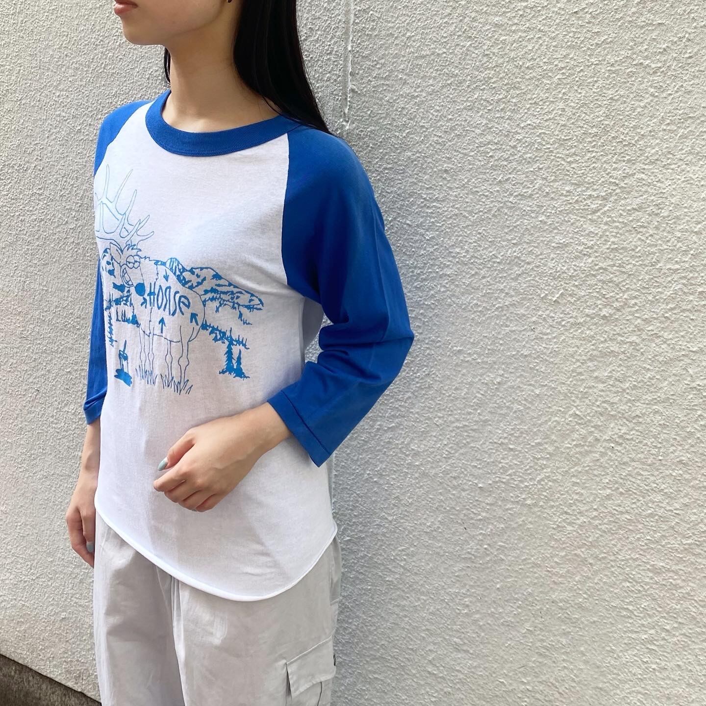 ゆるっとしたラフなイラストが可愛らしいラグランTシャツです。パキッとしたブルーが目を惹きます。