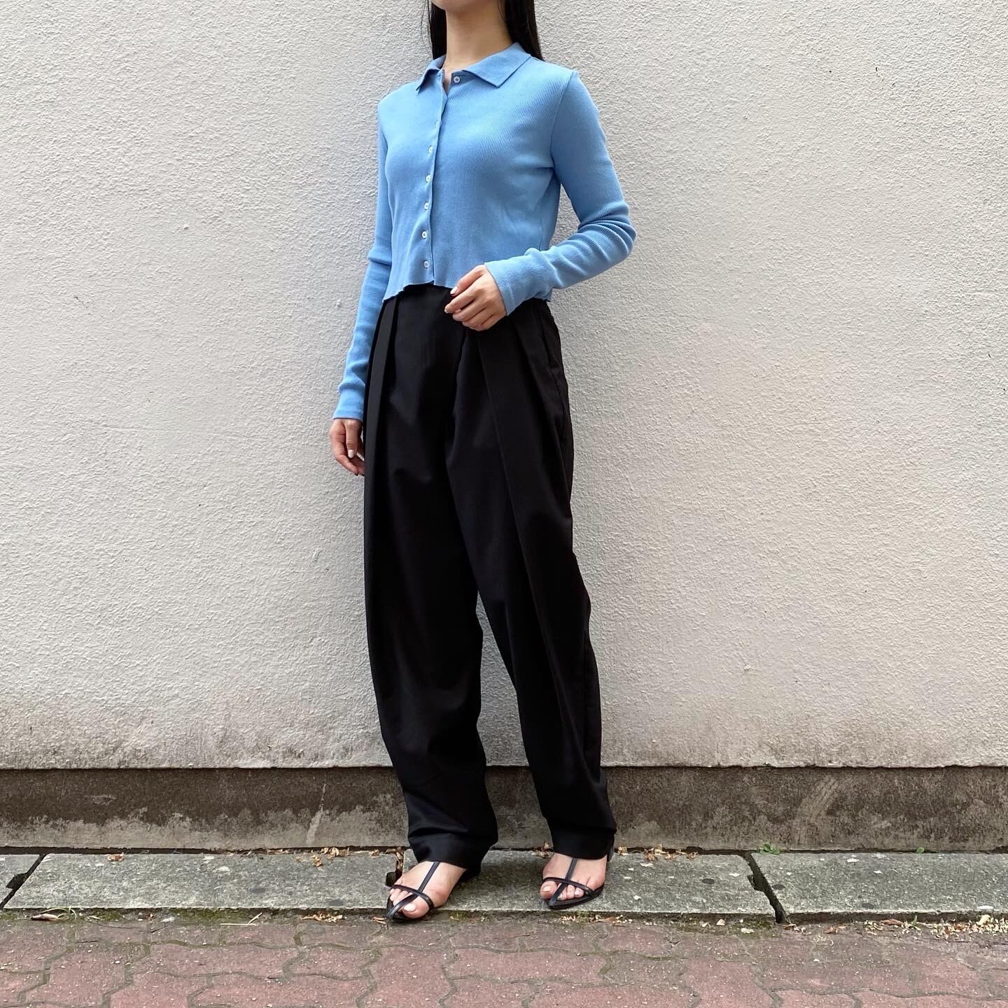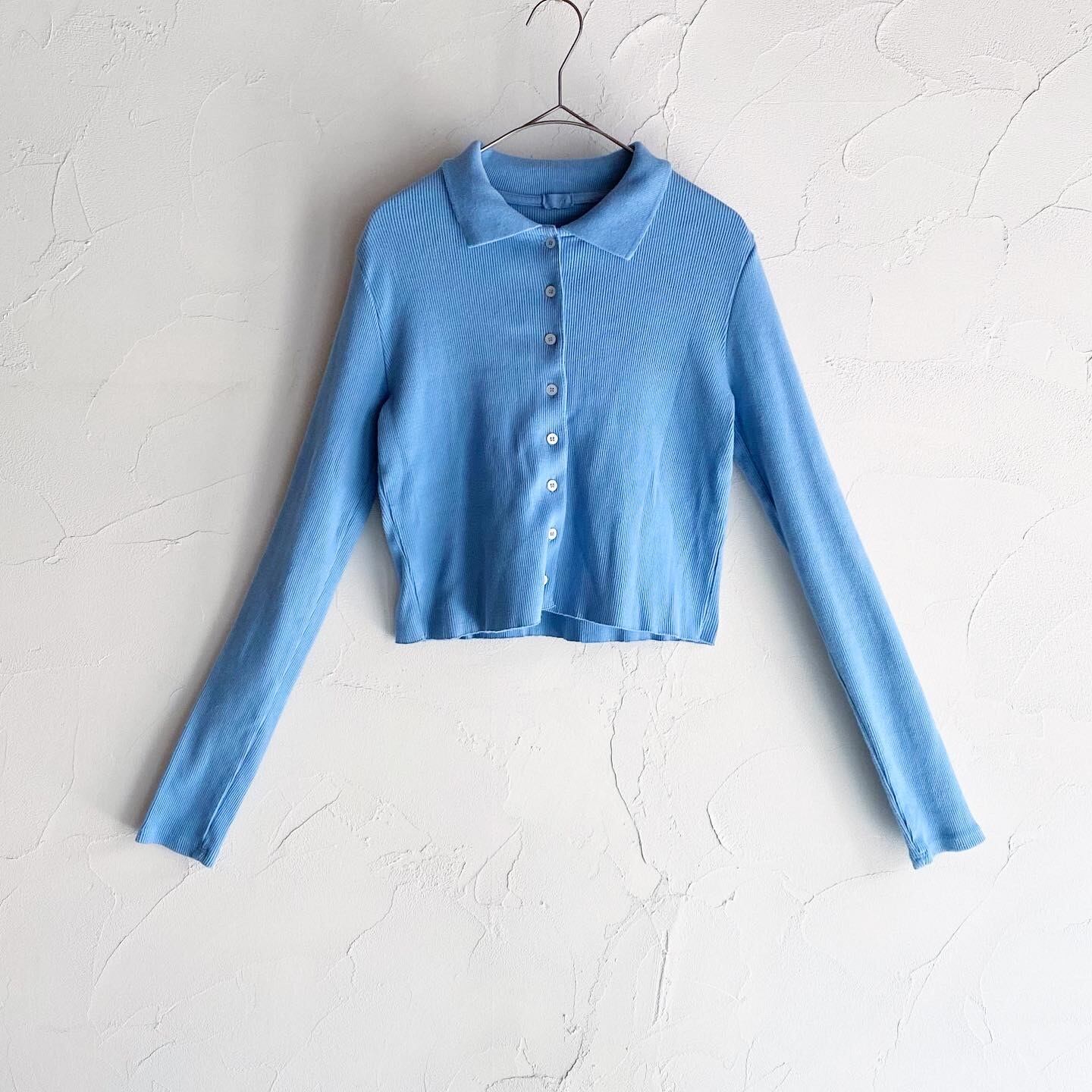 細かいリブとタイトめなサイズ感がポイントのニットカーディガンです。ちゅるんとした小さなボタンも愛らしいです。