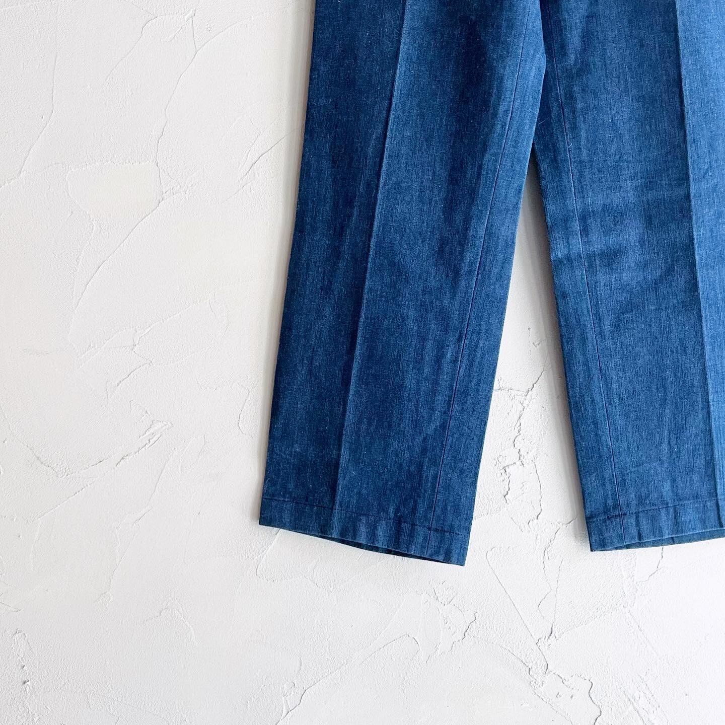 センタープレスでスタイルアップが期待できるストレートデニムです。ポケットやベルトループがついていない無駄を削ぎ落としたデザインで、キレイめにもカジュアルにも合わせやすい1着です。
