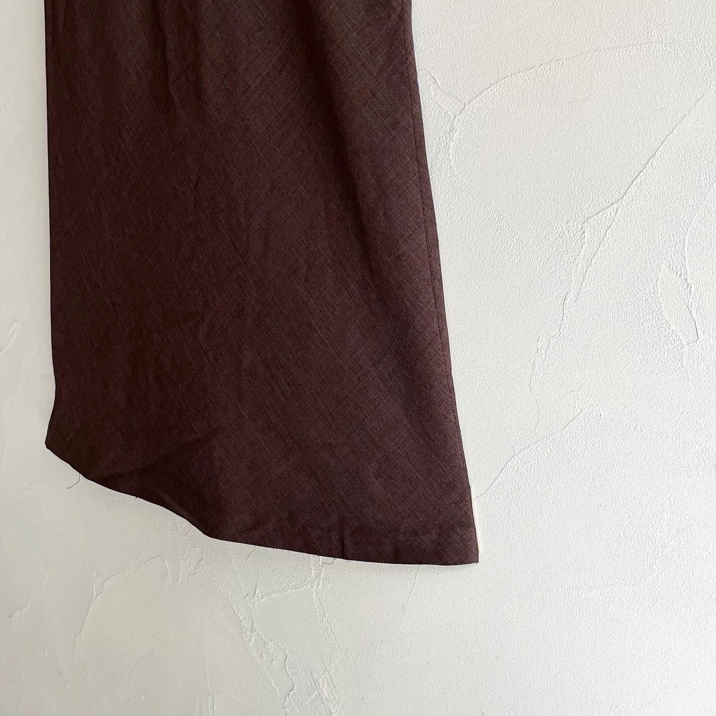 こっくりとしたブラウンが素敵なフレアスカートです。スリットは入っていませんが、伸縮性のある生地感で歩きやすいです。