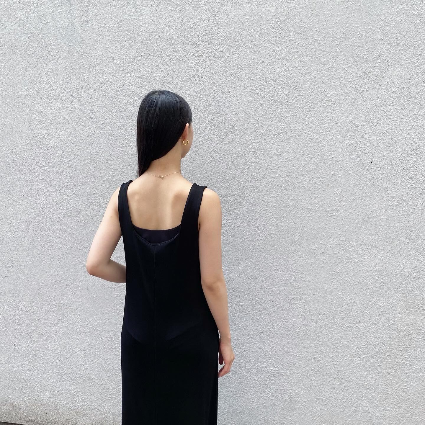すとんと落ちるシルエットが綺麗なスパンデックス混のワンピースです。襟ぐりが広めなので、インナーによって雰囲気を変えてお召し頂けます。