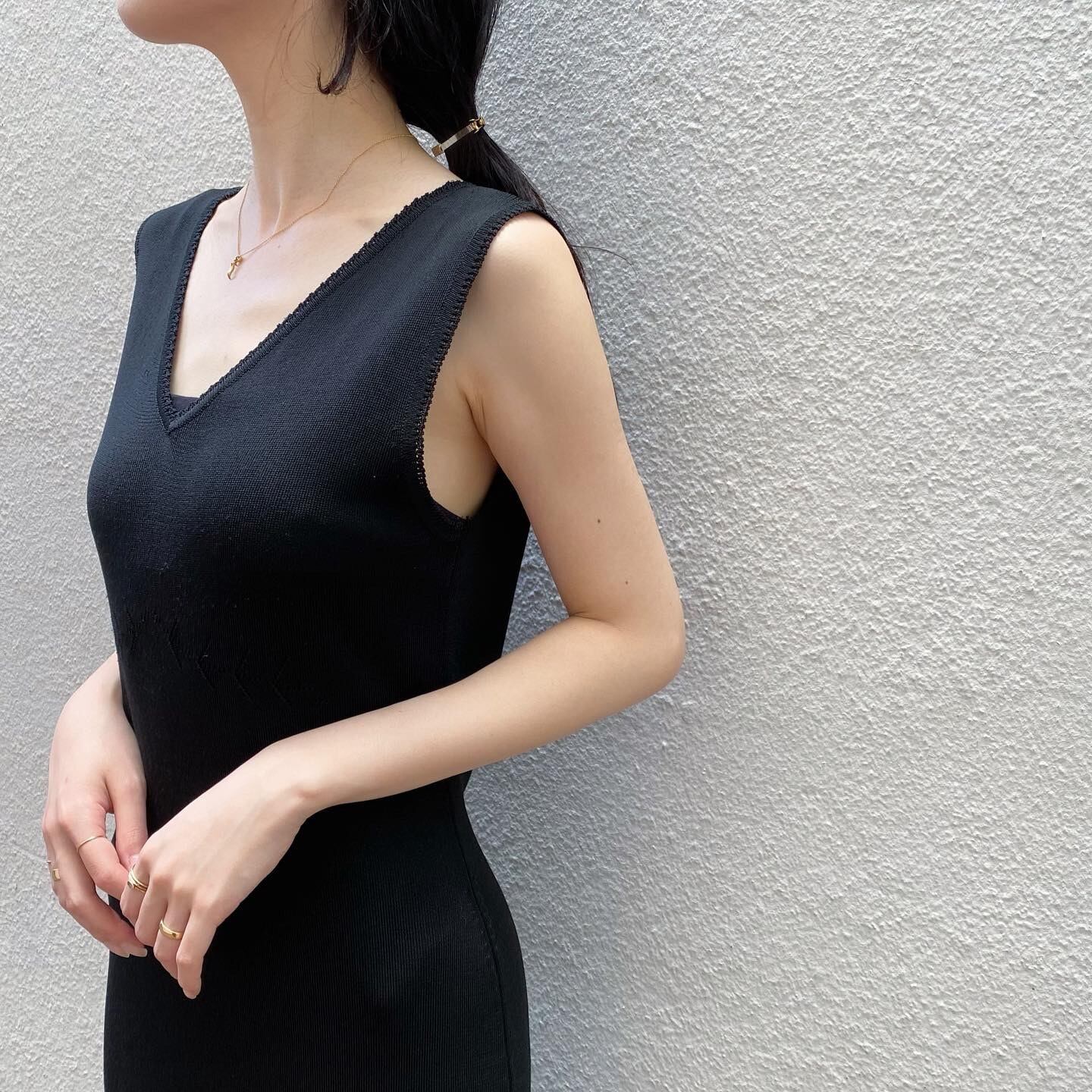 ウエストに刺繍が入ったデザイン性のあるニットワンピースです。程よくタイトなシルエットが綺麗な一枚です。