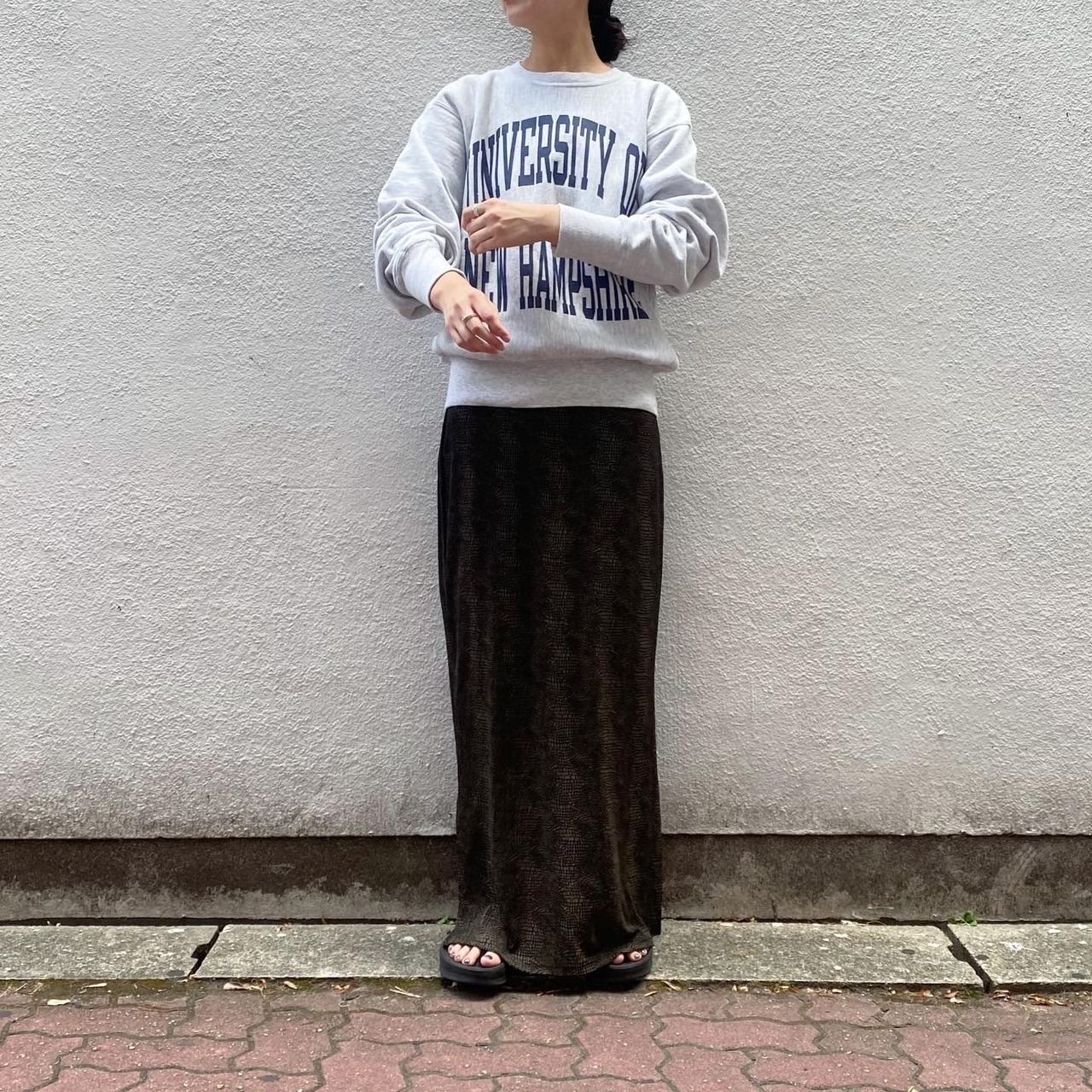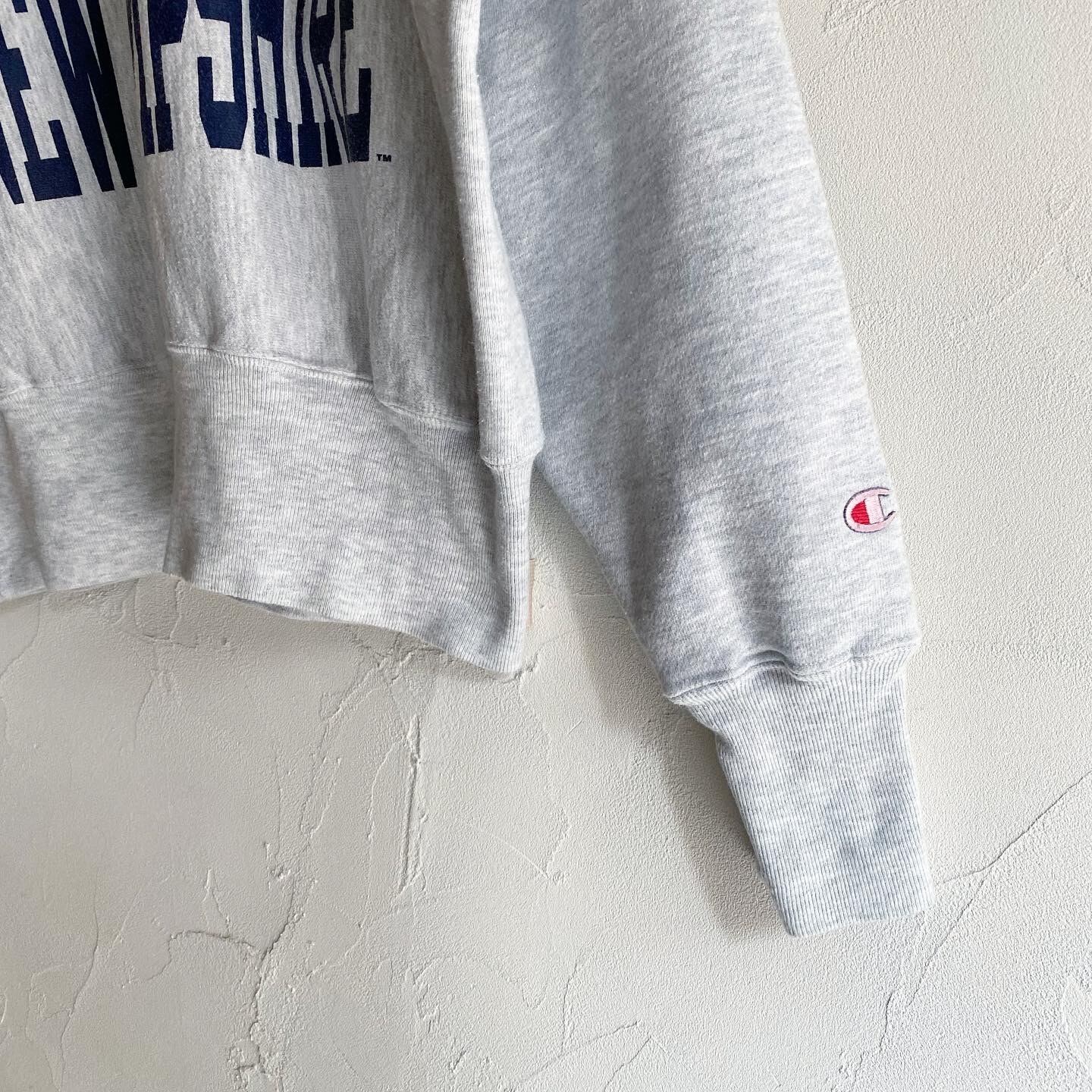 ボリュームのあるシルエットが素敵なChampionスウェットです。霜降りのグレーにネイビーのロゴがなんにでも合わせやすい1着です。