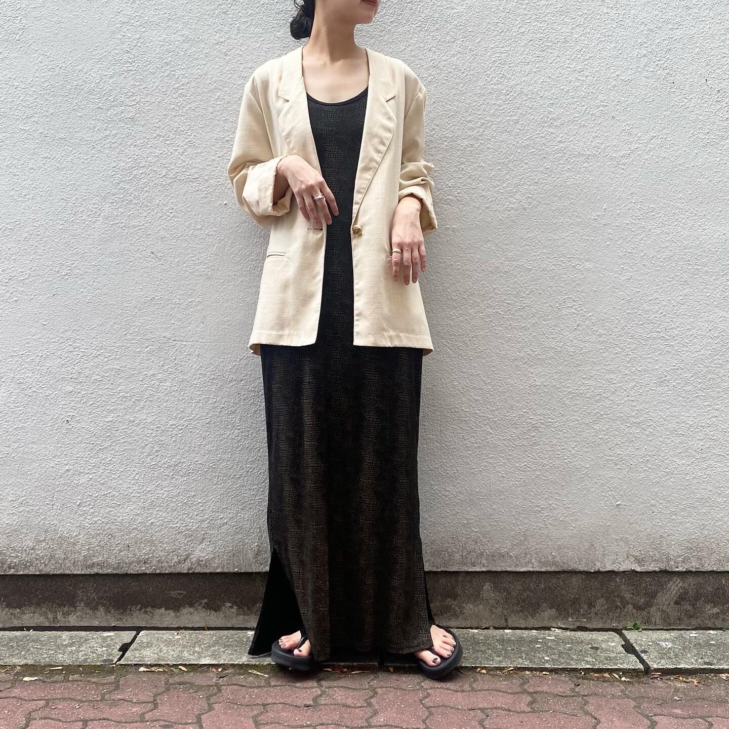 優しい色合いで着回しの効くテーラードジャケットです。ヴィンテージらしいゴールドのボタンがポイントです。