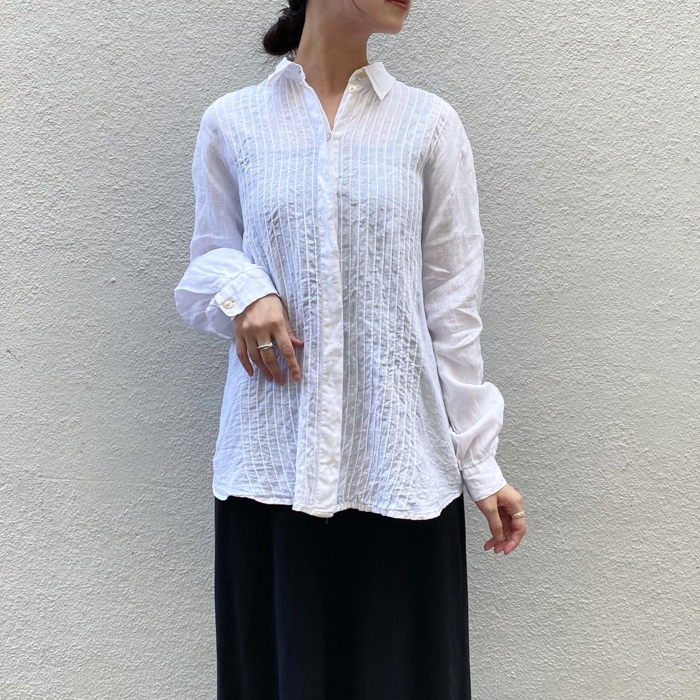 涼しげなリネン素材で控えめなデザインがお洒落なシャツです。残暑〜秋にかけて使い勝手の良い1着です。
