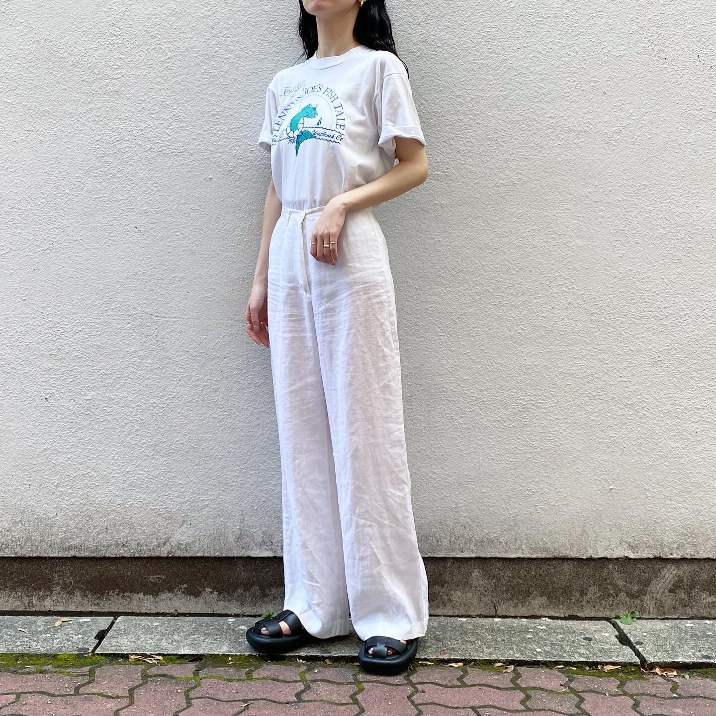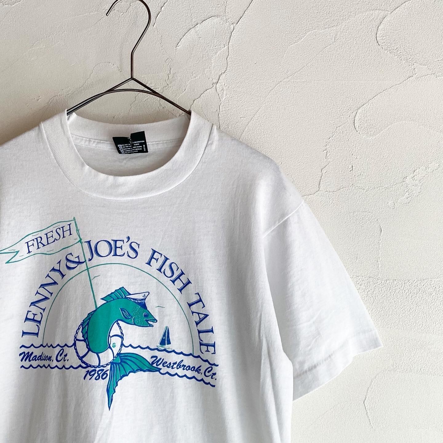 魚のイラストが愛らしくブルーとグリーンの配色が爽やかなプリントteeです。ややコンパクトなサイズ感でジャストサイズめにお召し頂けます。