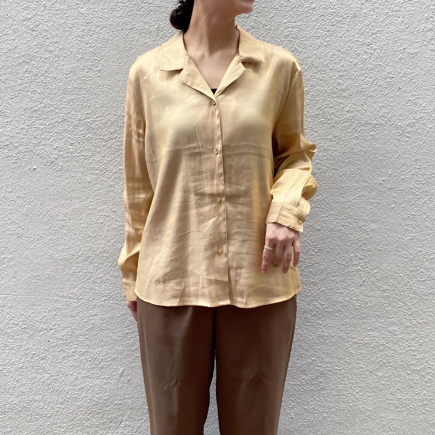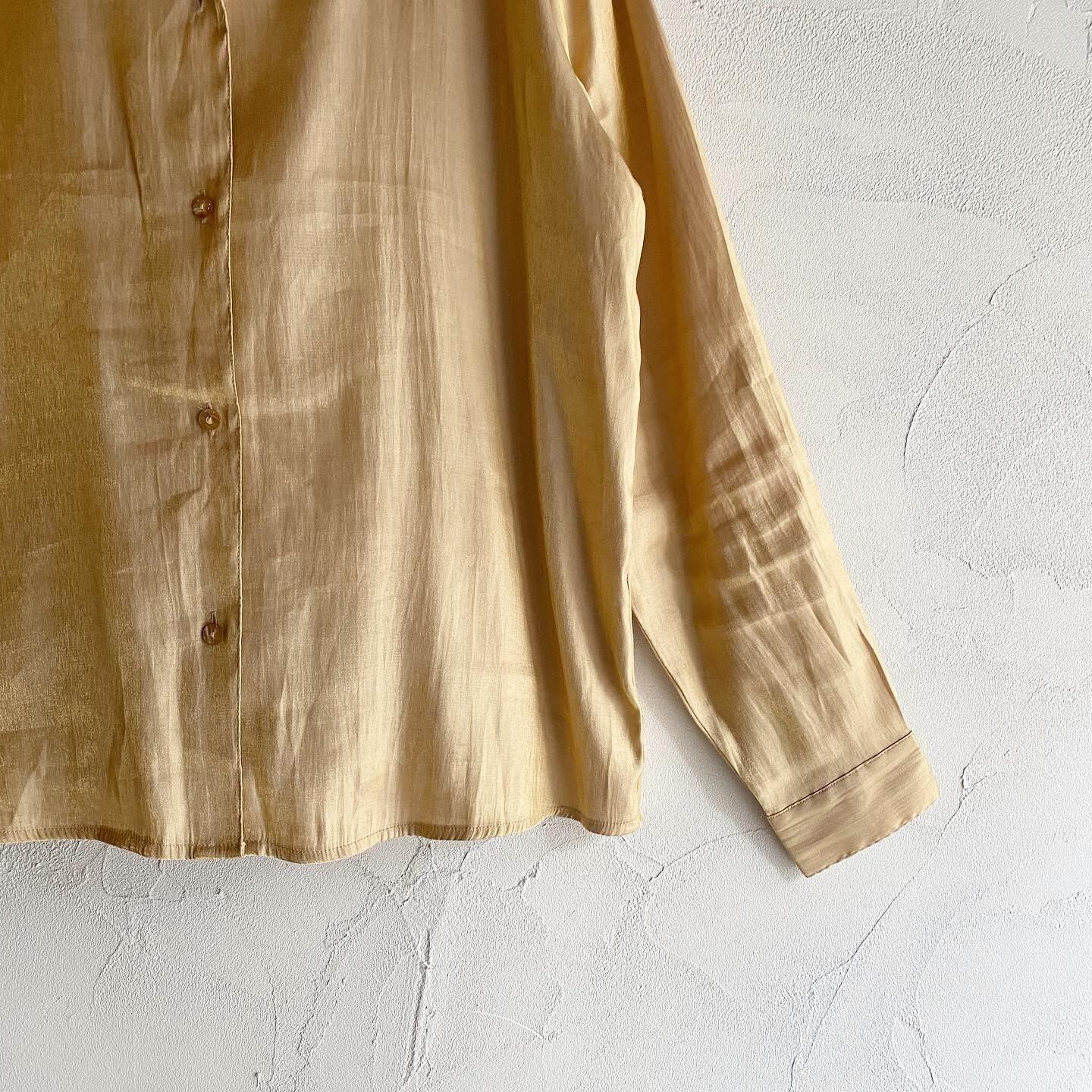 繊細なラメが美しいオープンカラーシャツです。とろみのある滑らかな生地感です。