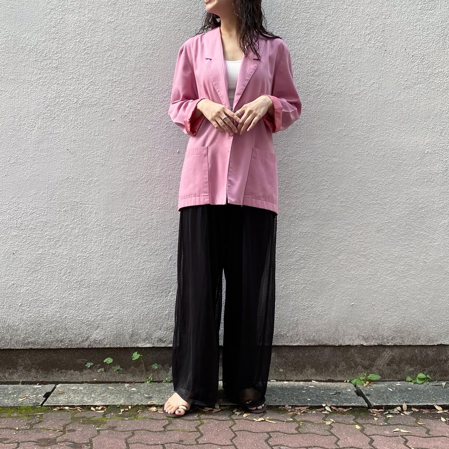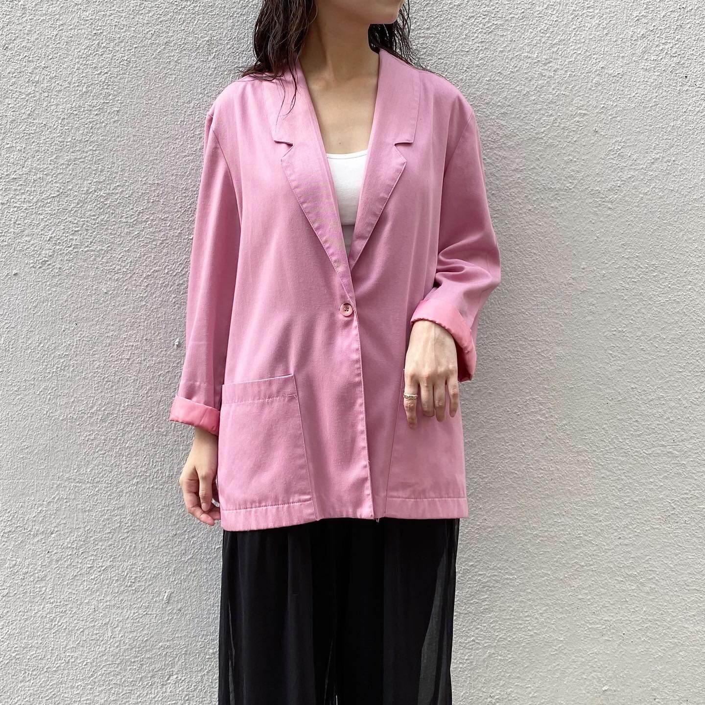 青みピンクが珍しいテーラードジャケットです。ゆったりめでルーズなシルエットが素敵です。