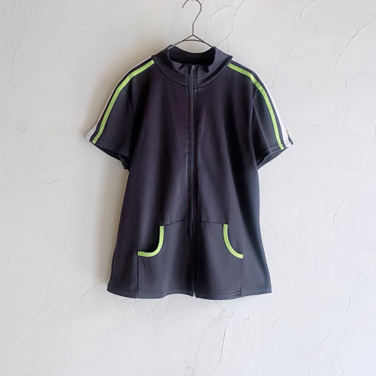 ライトグリーンの差し色が目を惹くジャージトップスです。ジャージ素材なので着心地よく楽にお召し頂けます。