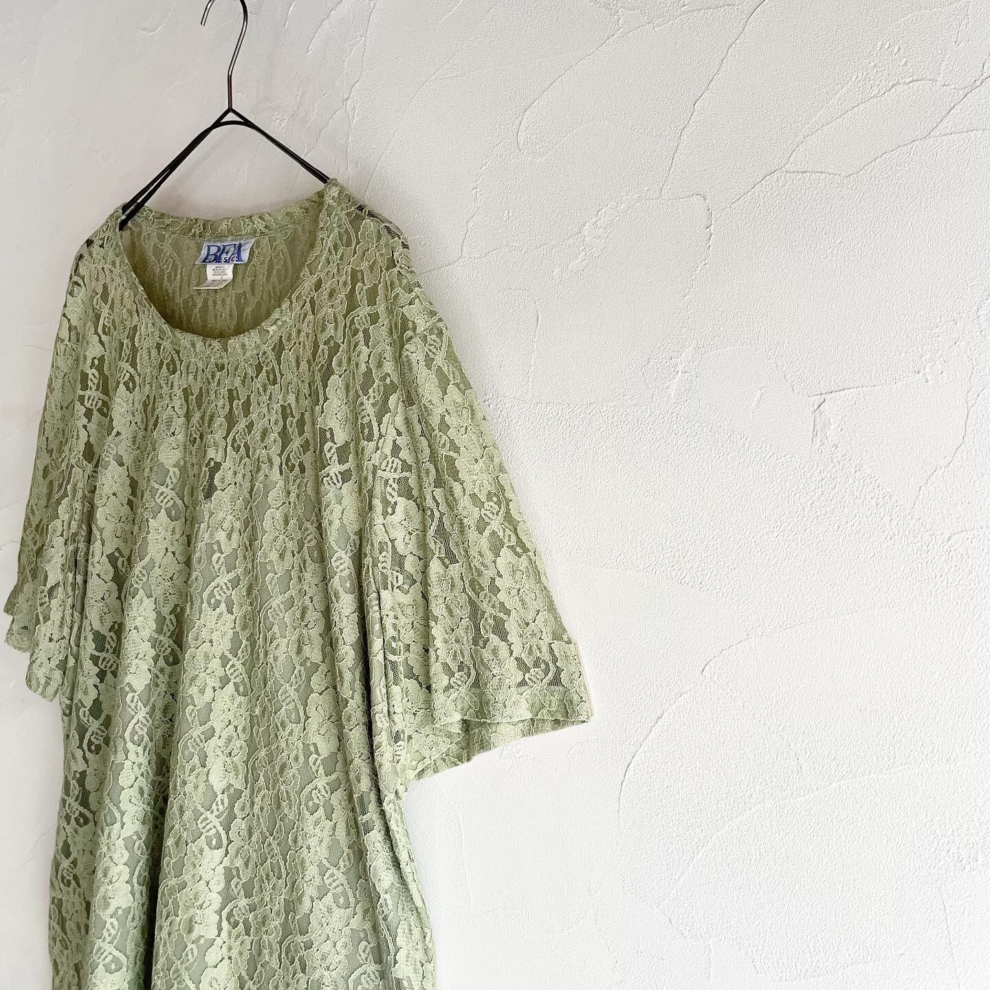 七分袖でゆるっとしたシルエットのレーストップスです。フロントの胸から下部分に裏地が付いており、透けずらい仕様になっています。