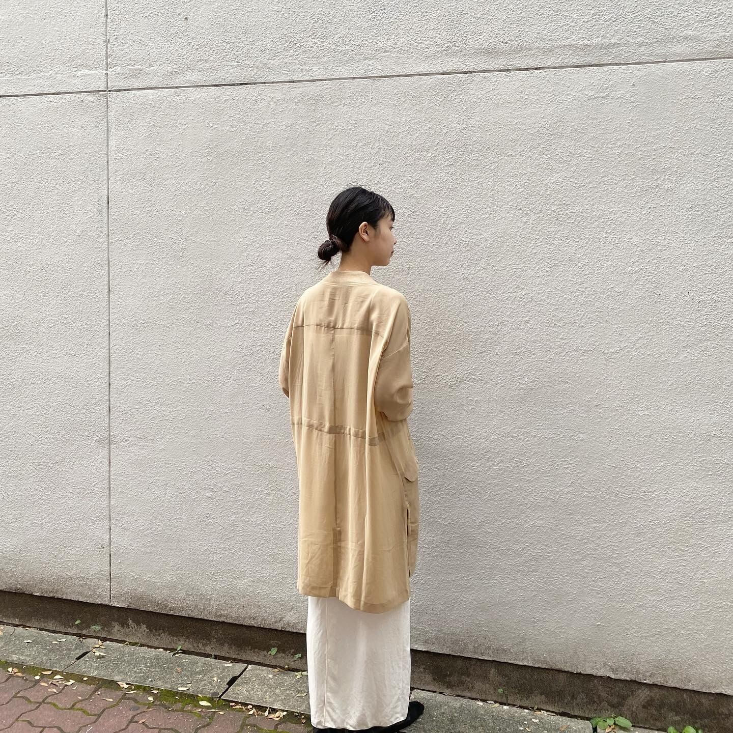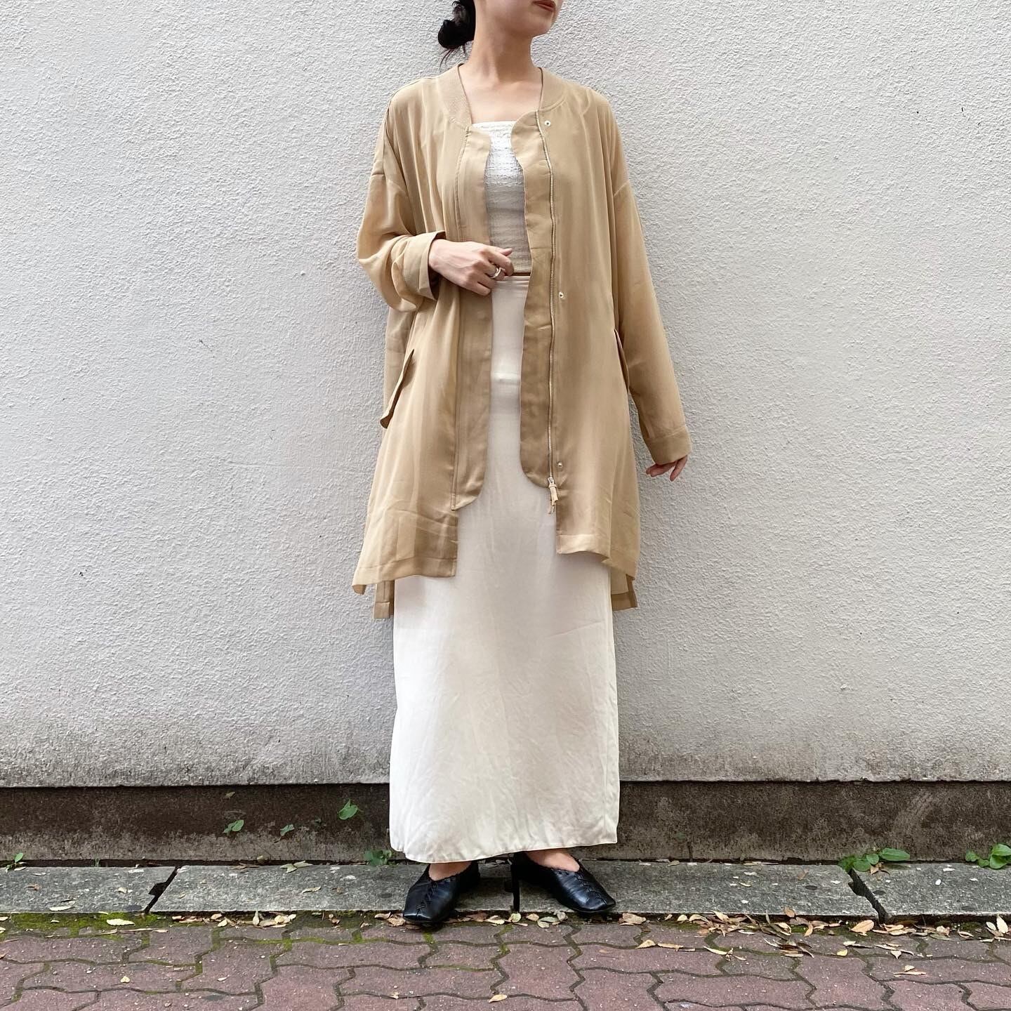 とろみのある柔らかなシアー生地のライトアウターです。ブルゾンのようなデザインが程よくカジュアルさもありつつ、品のある1着です。