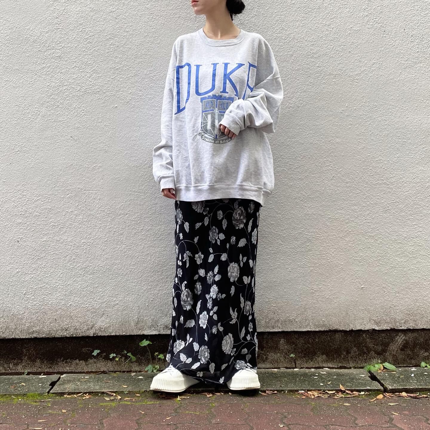 プリントの擦れ具合やリブが少し伸びている感じが古着らしい味のあるスウェットです。カットソーとスウェットの間くらいの薄手な生地感です。