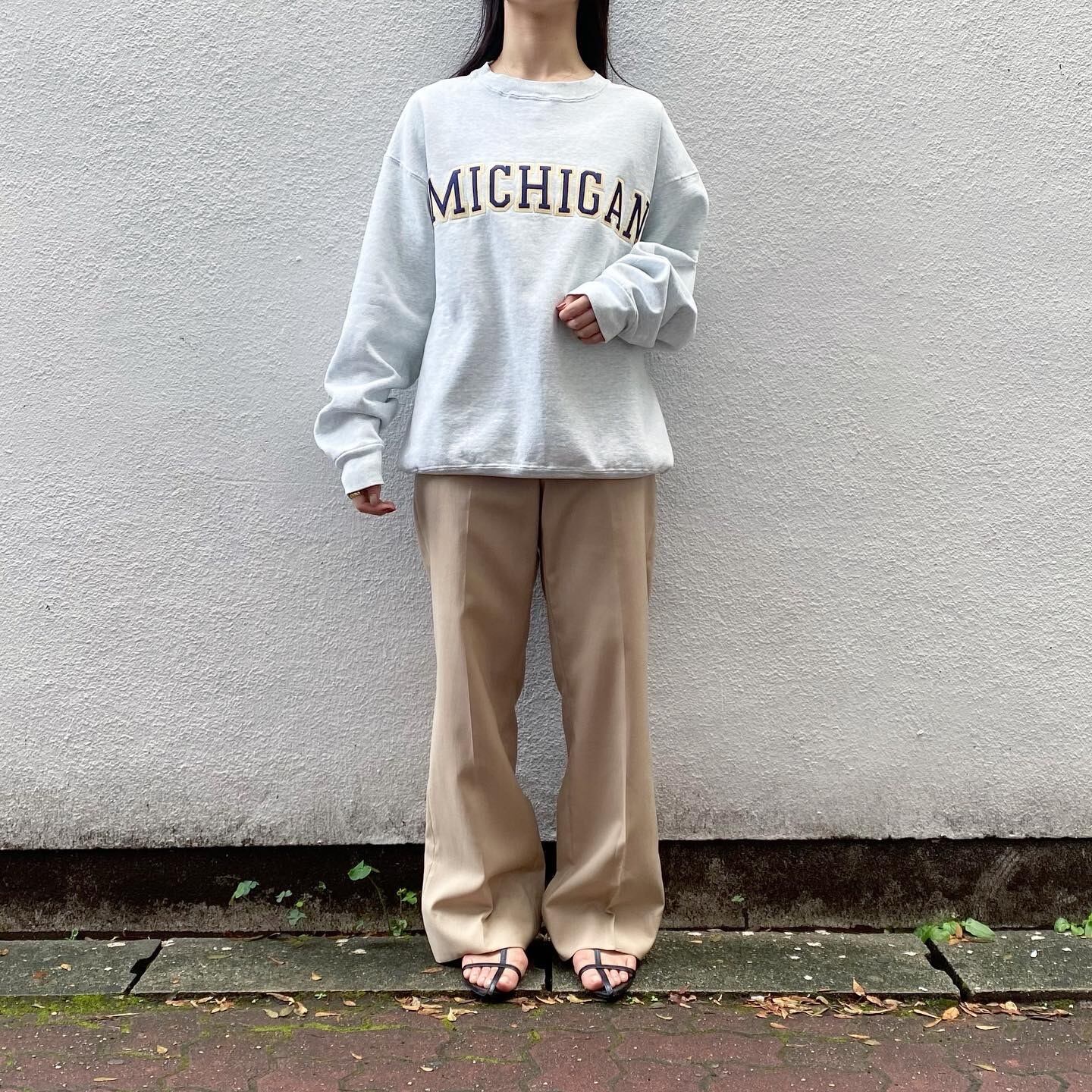 立体感のある刺繍が愛らしいFRUIT OF THE LOOMのスウェットです。白に近いグレーの色味が軽やかな印象でお召し頂けます。