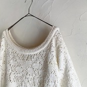 襟ぐりの空き具合やクロップド丈がお洒落なクロシェニットです。七分丈が季節の変わり目にぴったりな1着です。
