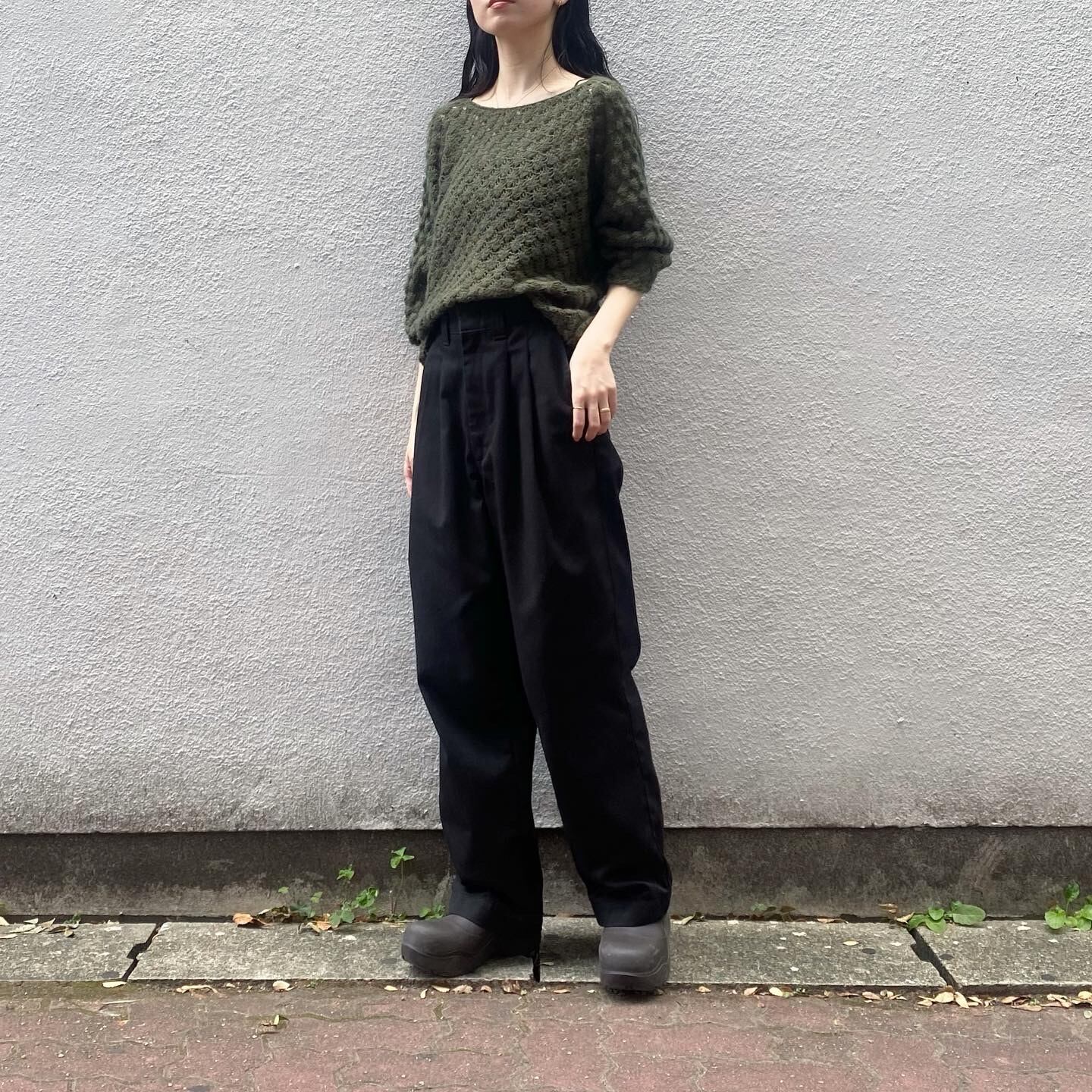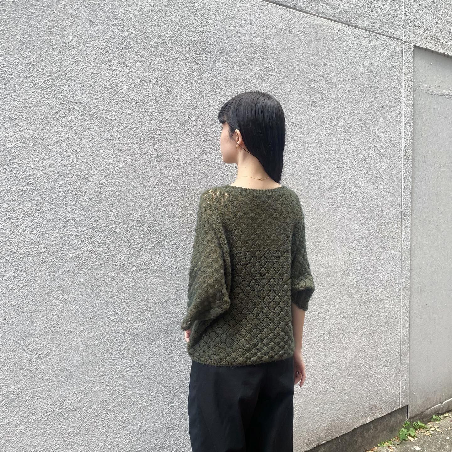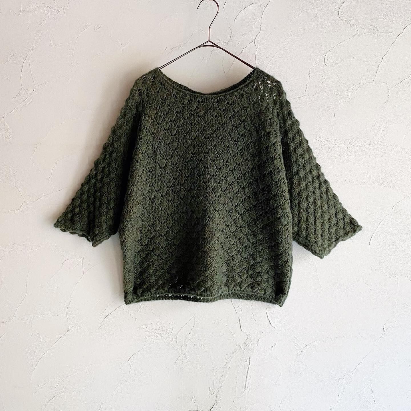ぽこぽことした立体感が可愛らしいクロシェニットです。ドルマンスリーブでたぷっとしたシルエットと、短めの袖丈がポイントです。