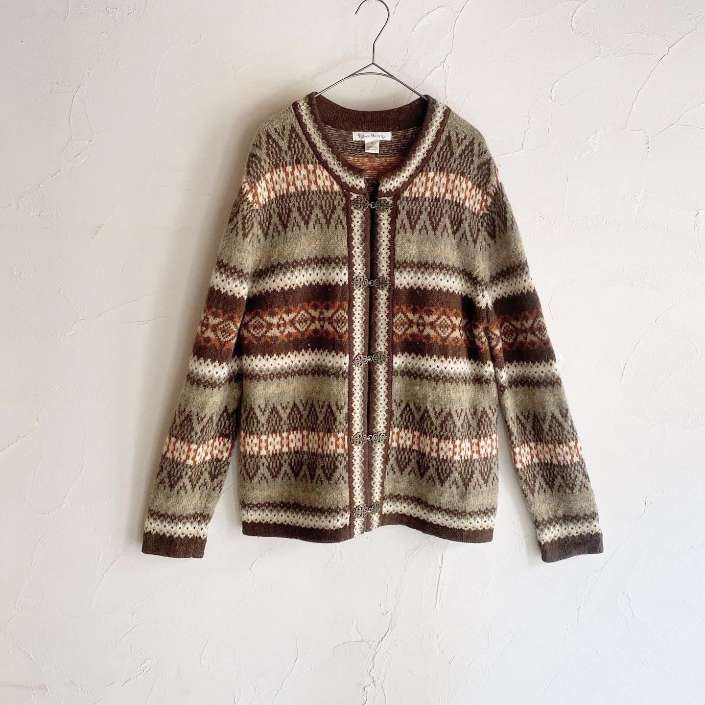 肉厚すぎず早い時期から活躍できそうなノルディックニットカーディガンです。ブラウンベースのこっくりとした秋らしい配色が素敵です。