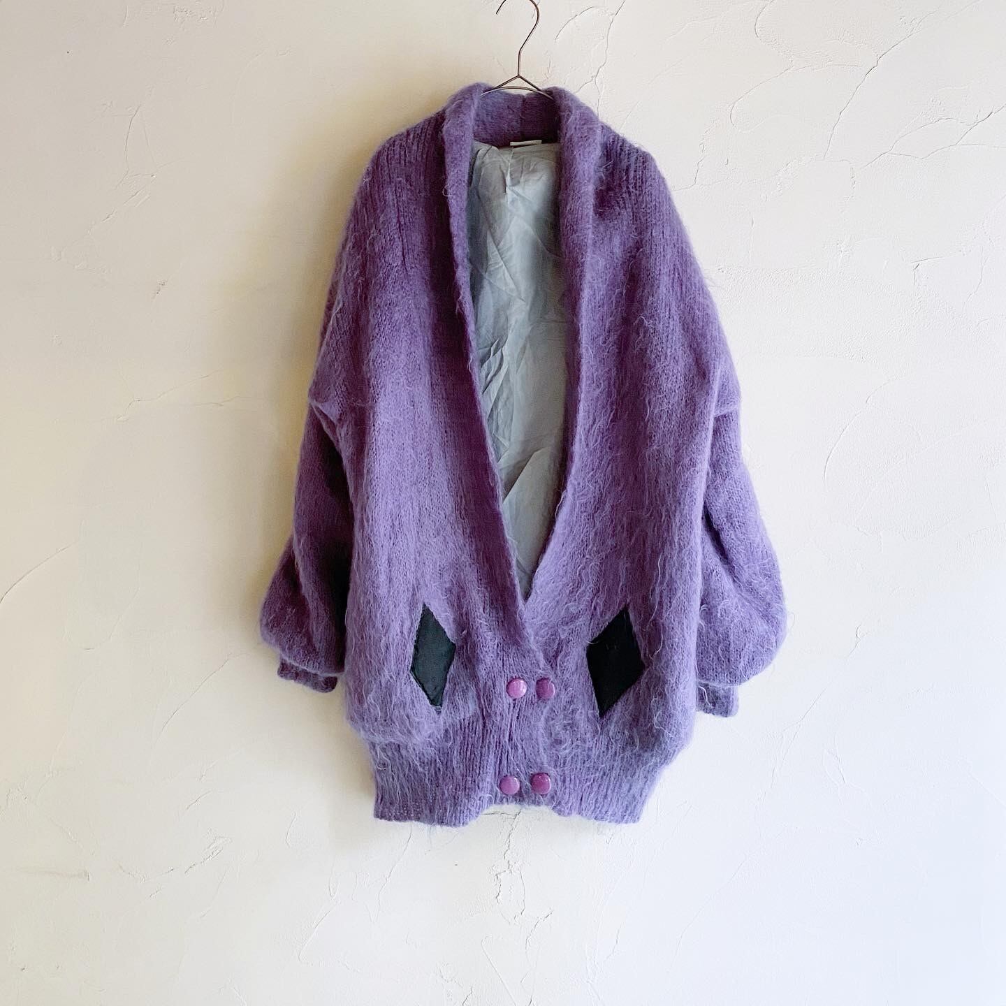 ボリューミーなシルエットが愛らしいモヘアニットジャケットです。裏地が付いているので風を通さず、暖かくお召し頂けます。