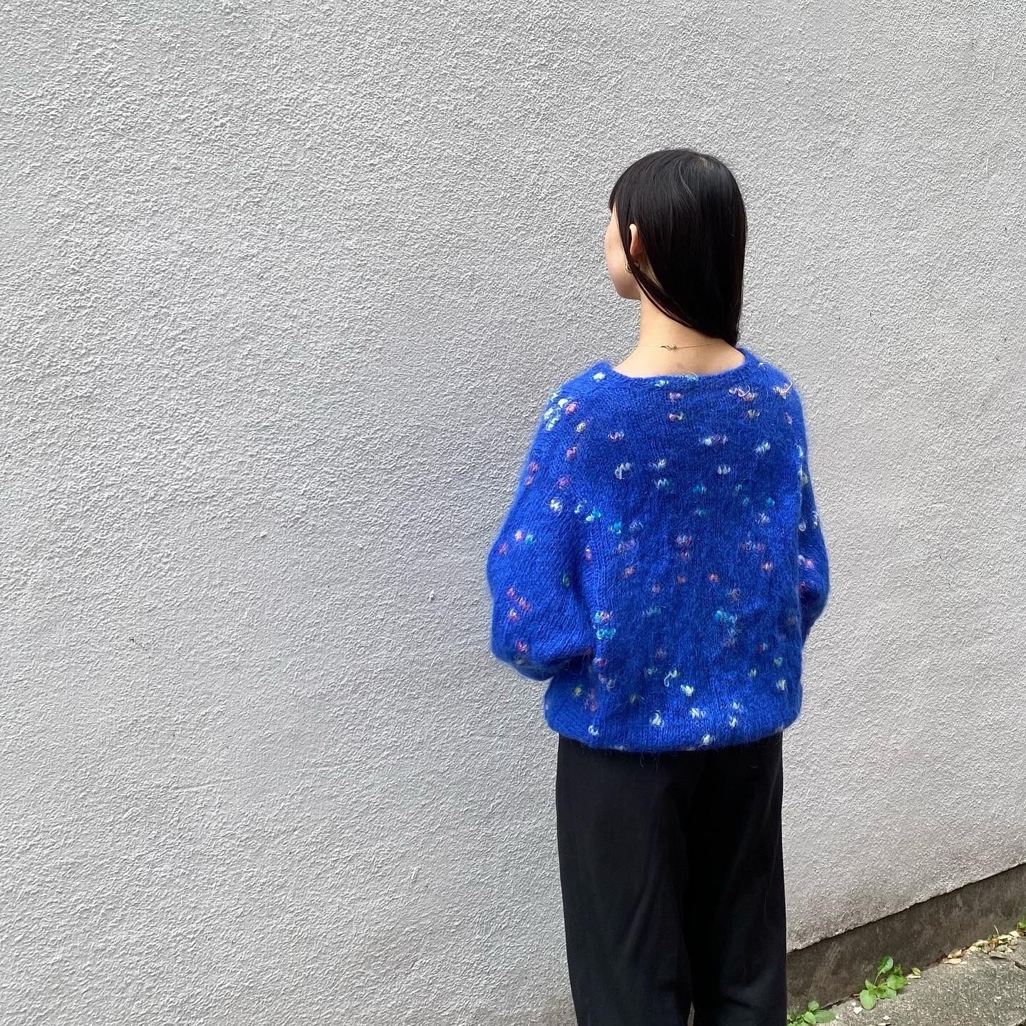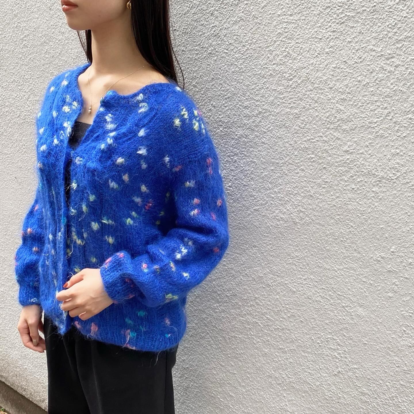 カラフルでポップなデザインが目を惹くモヘアニットカーディガンです。程よくラメ糸も織り込まれています。