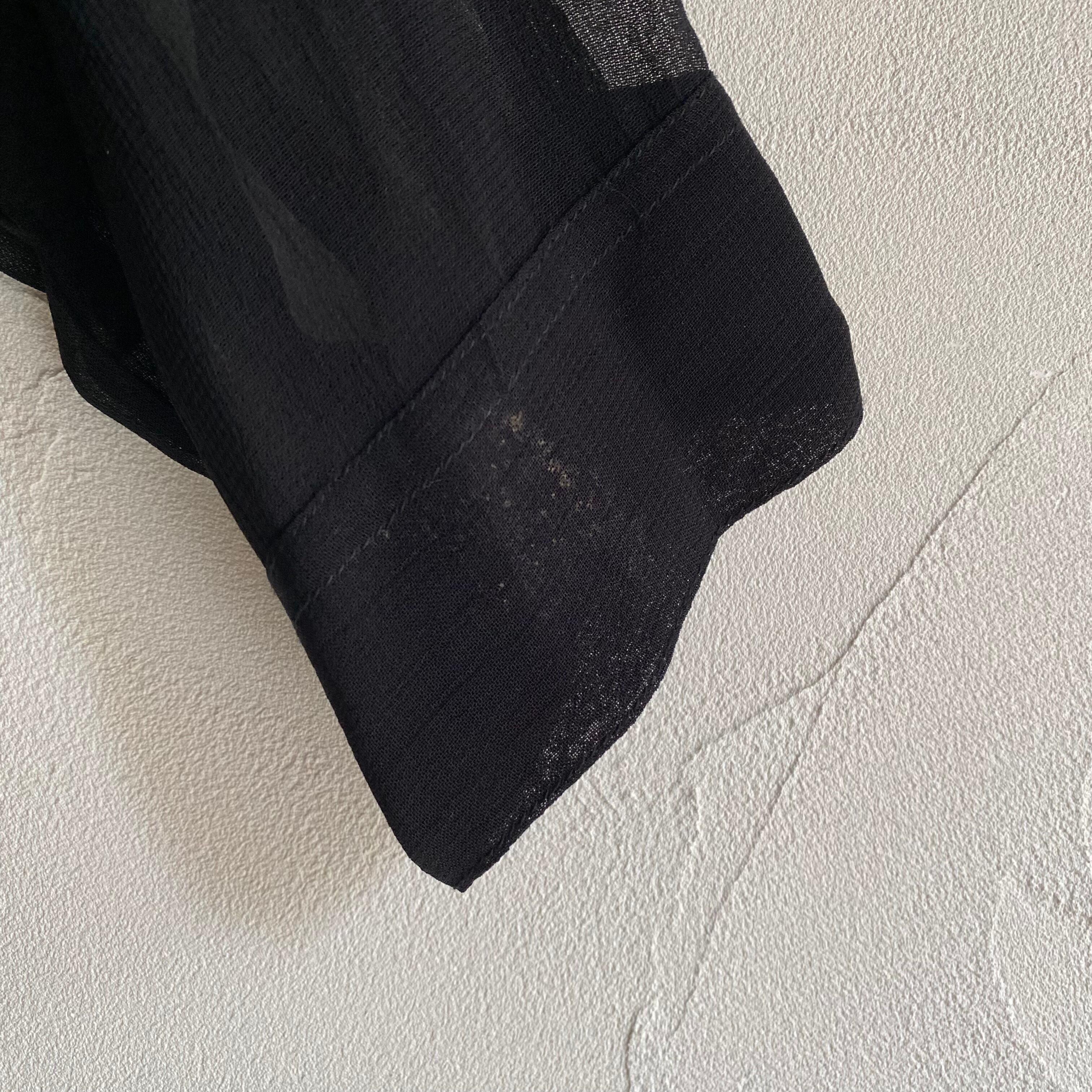 ゆったりとしたサイズ感で薄手のタートルとも相性の良さそうなシアーシャツです。袖がたっぷりとボリュームのあるシルエットも素敵です。