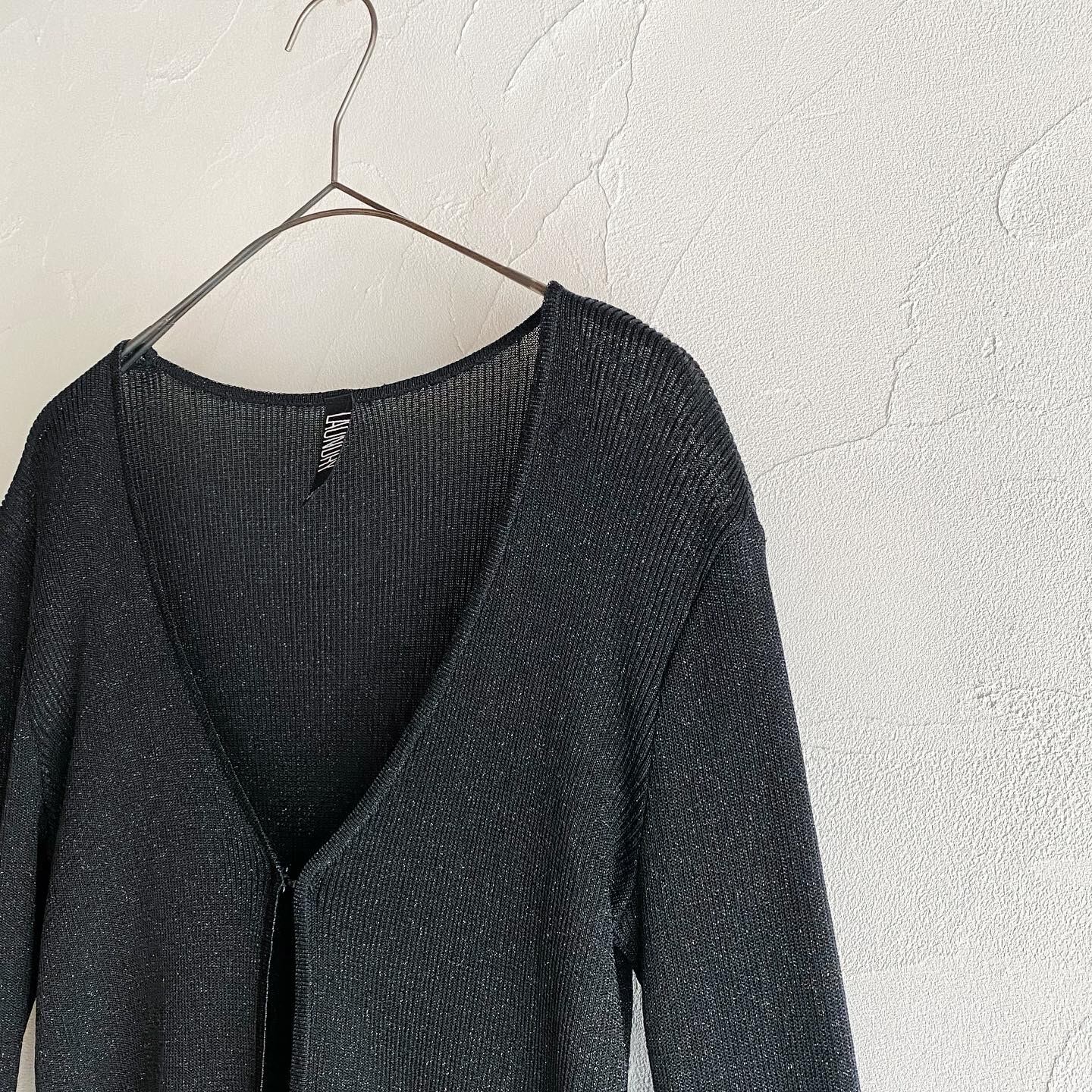 キラキラと繊細に輝くラメが美しいリブニットカーディガンです。フロントホックですっきりとした印象でお召し頂けます。