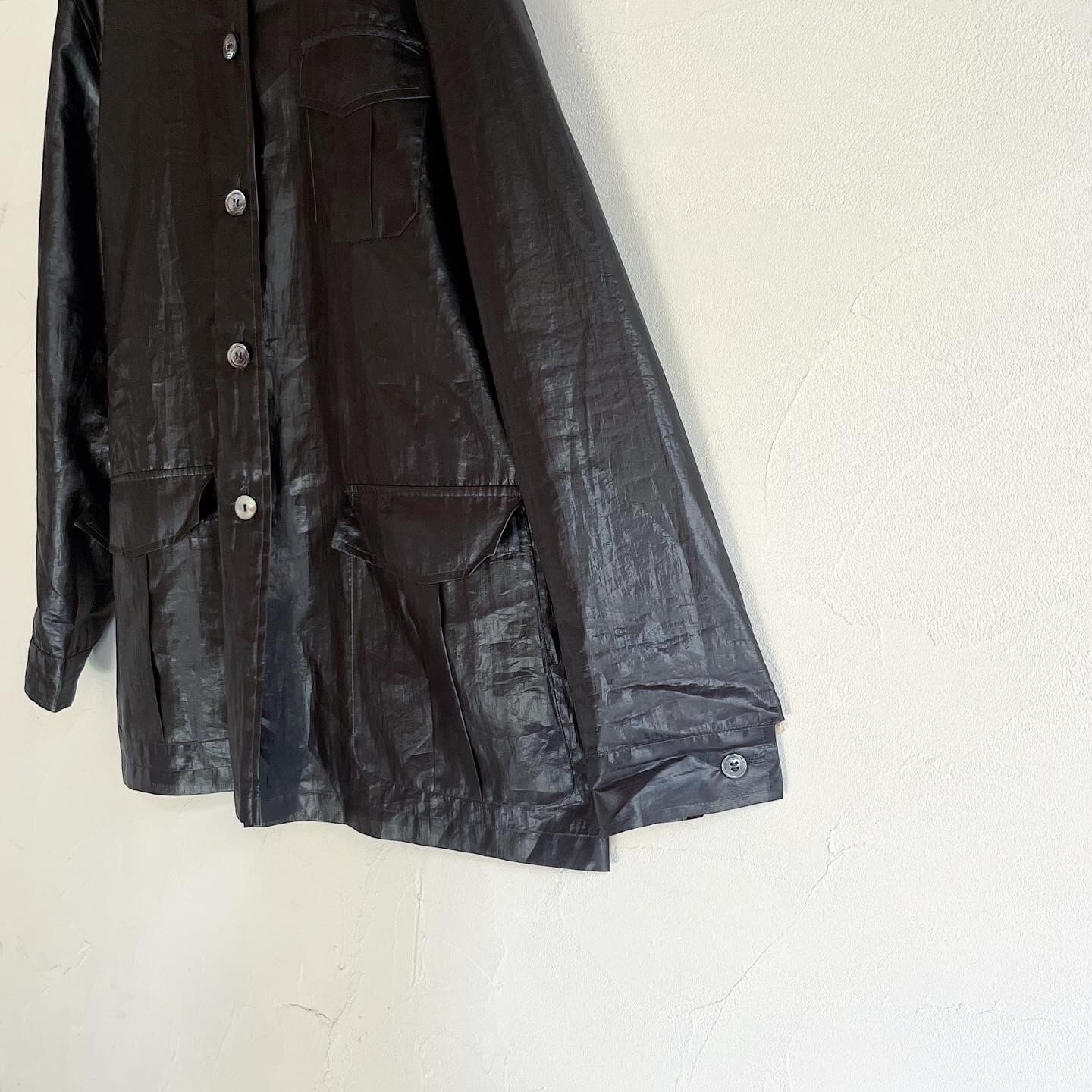 程よい光沢感とサファリシャツのようなデザインが絶妙なバランスのシャツジャケットです。裏地がついているので、1枚ではもちろんライトアウターとしてもお召し頂けます。