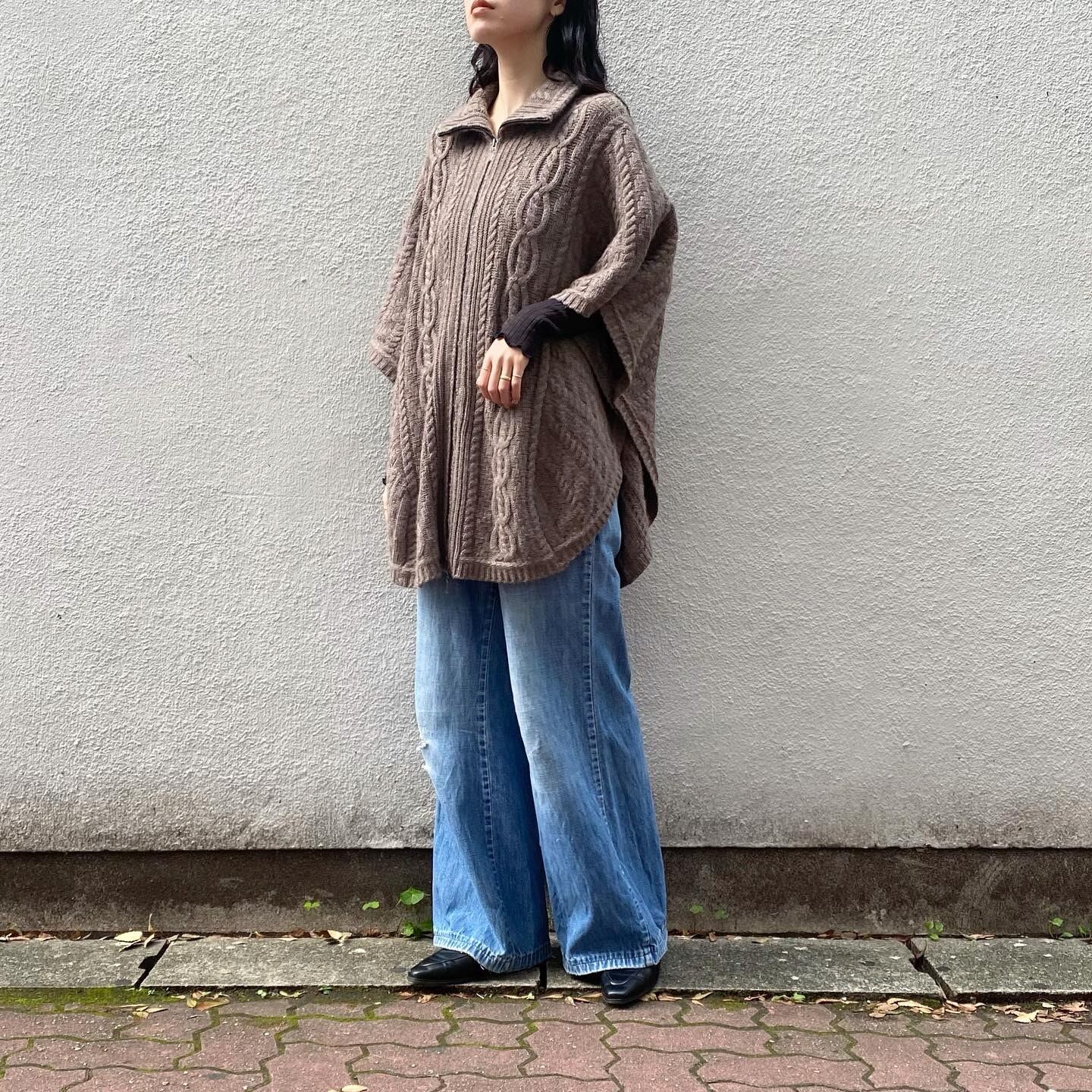 100%カシミヤで肌触りが良く、首元まで暖かいニットポンチョです。ダブルジップなのでインナーを少し見せるようにお召し頂くのも素敵です。