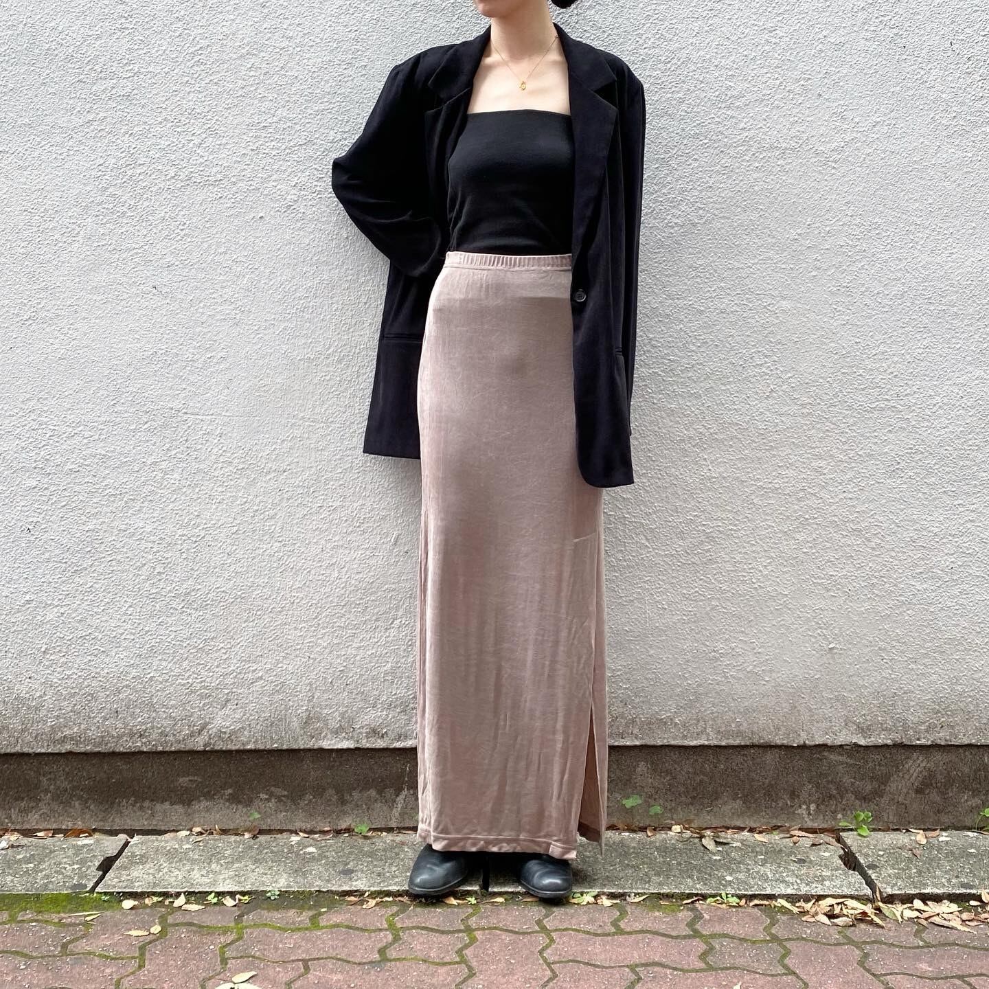 軽やかでてろっとした素材感のスカートです。どんなトップスにも相性の良いシルエットの一枚です。