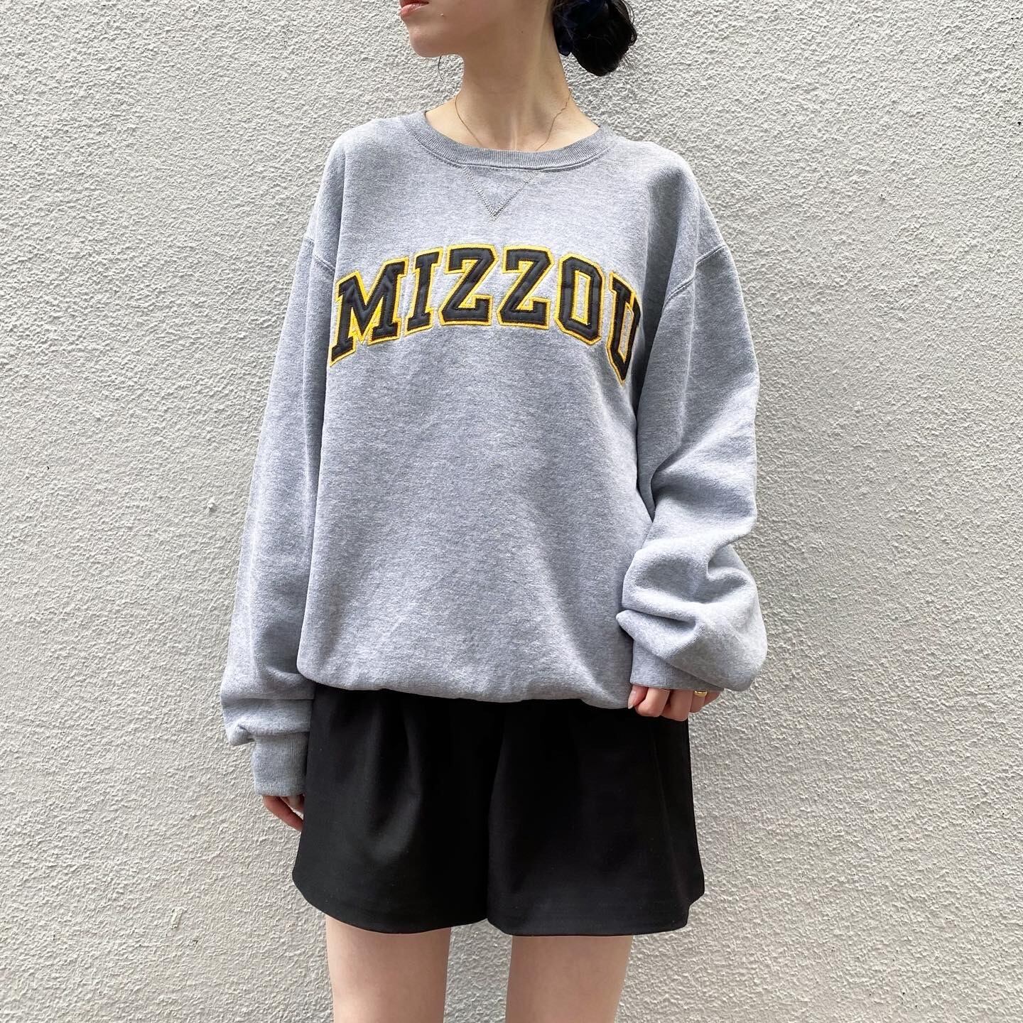 ブラックとイエローの立体的な刺繍が目を惹くスウェットです。やや薄手で軽く楽にお召し頂けます。
