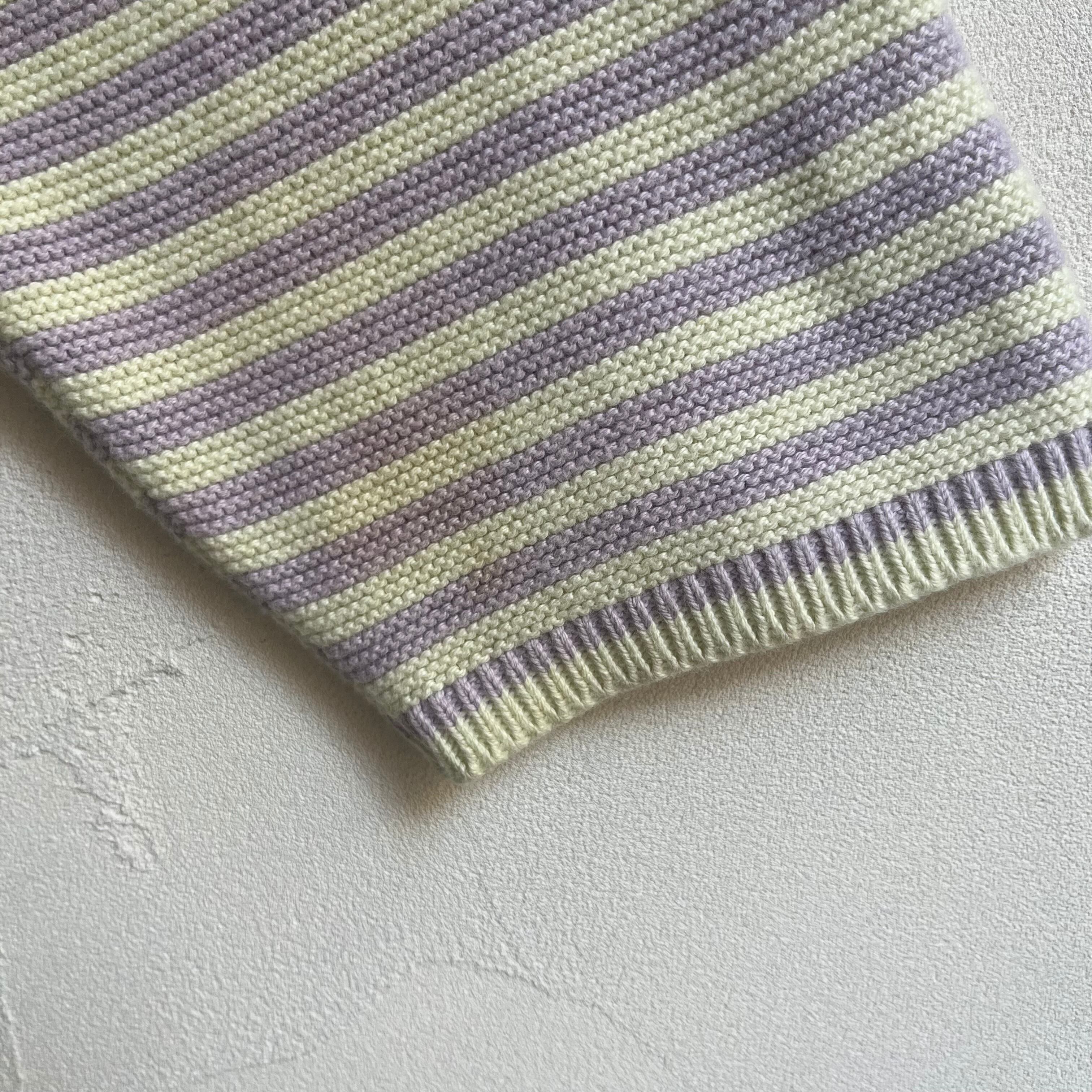 クリーミーなパープルとイエローのボーダーが可愛らしいL.L.Beanのカーディガンです。