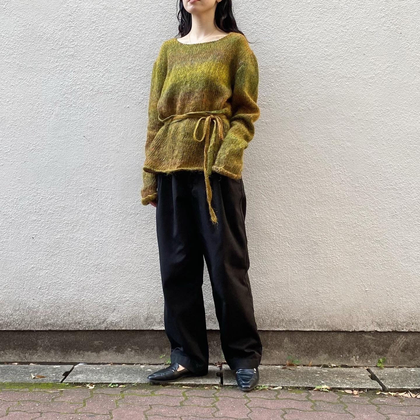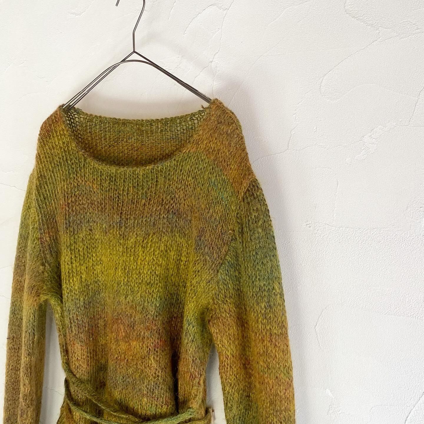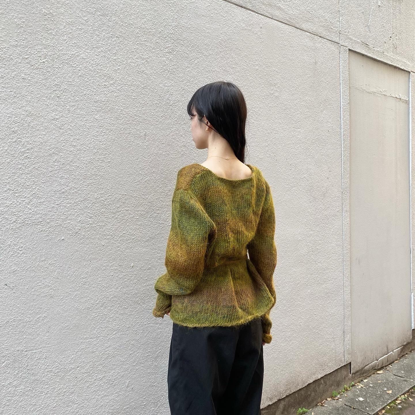 様々な色味が織り交ざった紅葉カラーが素敵なモヘアニットです。