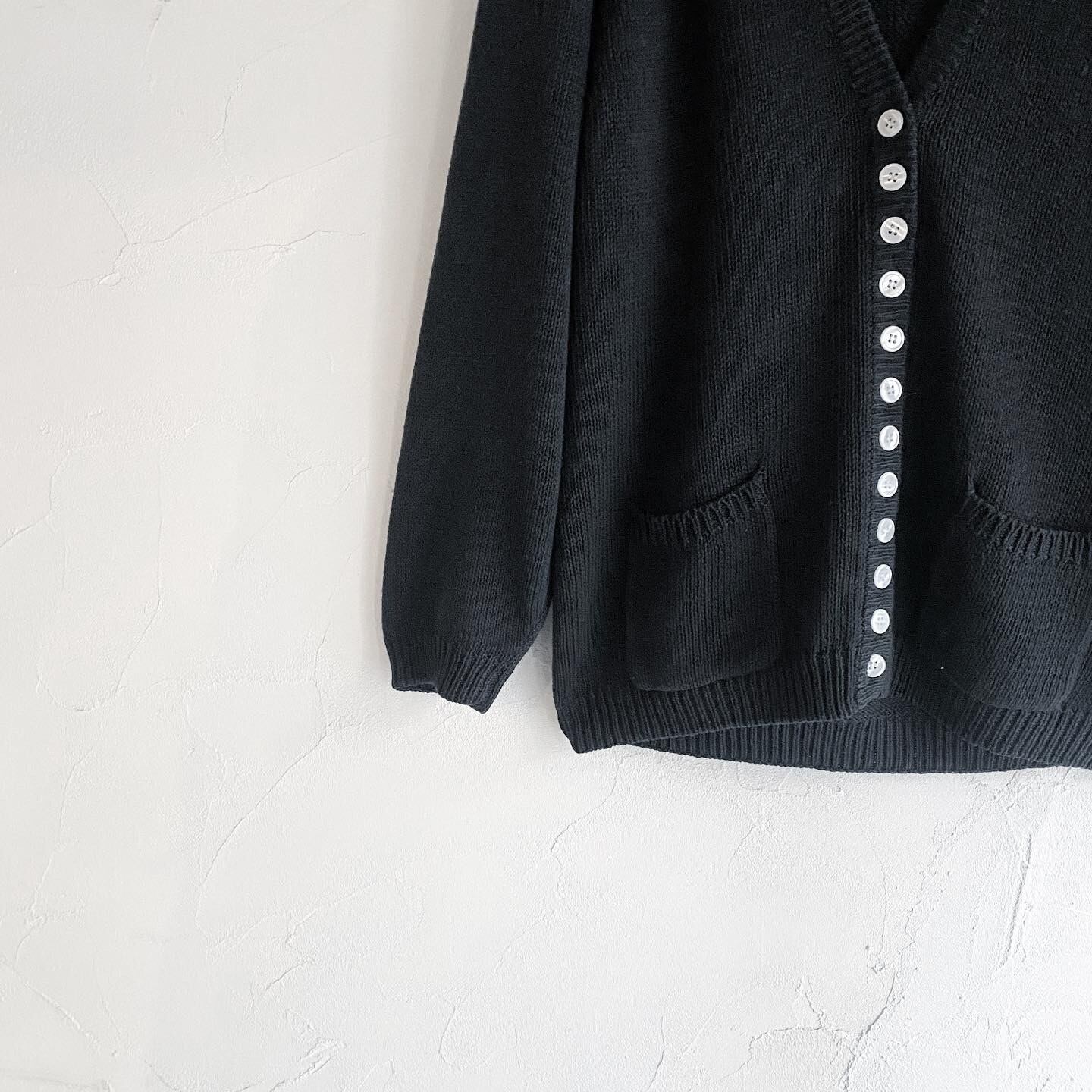 フロントの連なるボタンが可愛らしい、ニットカーディガンです。ヨークスリーブで、肩の落ち感も素敵です。